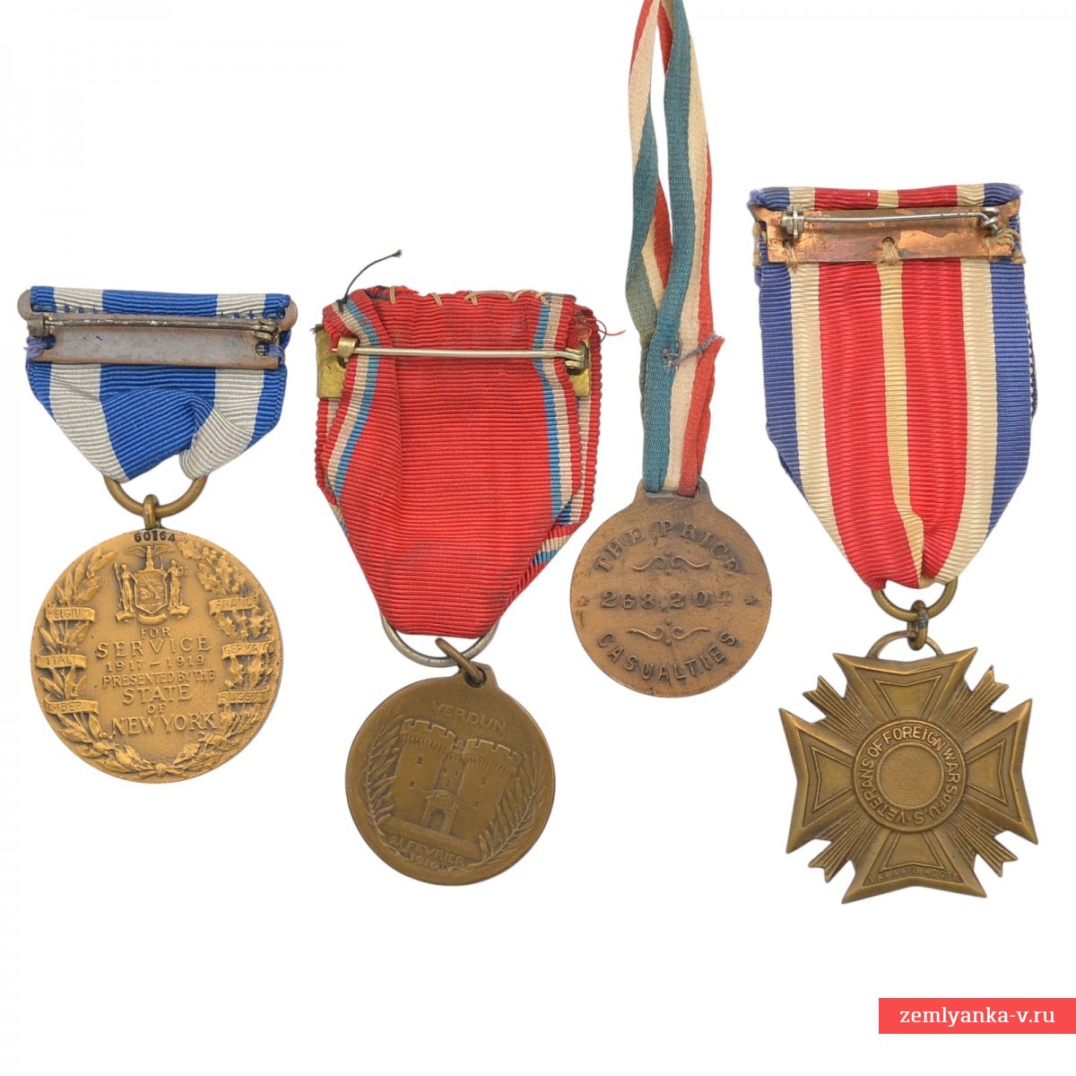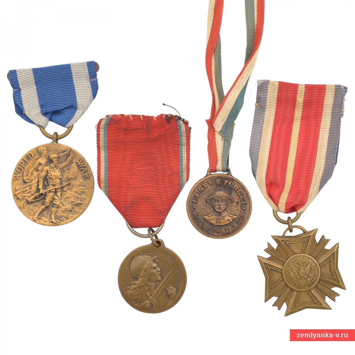 An extremely rare set of awards that belonged to Joseph L. Letart. LeTarte) – a veteran of the First World War. According to Massachusetts military records, Joseph Lethart was a resident of Methuen and served in the U.S. Army between 1917 and 1919 in the 17th Engineer Regiment, which was part of the 26th Infantry Division (known as the "Yankee Division"). It was there that most of the conscripts and volunteers from Massachusetts served. This division spent 210 days at the front in France and participated in all major battles (Saint-Miel, Meuse-Argonne offensive). He died on July 26, 1939. The set of his awards includes: