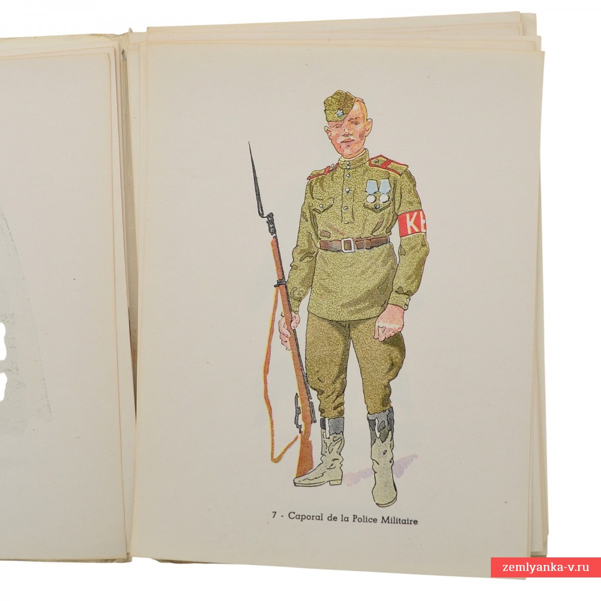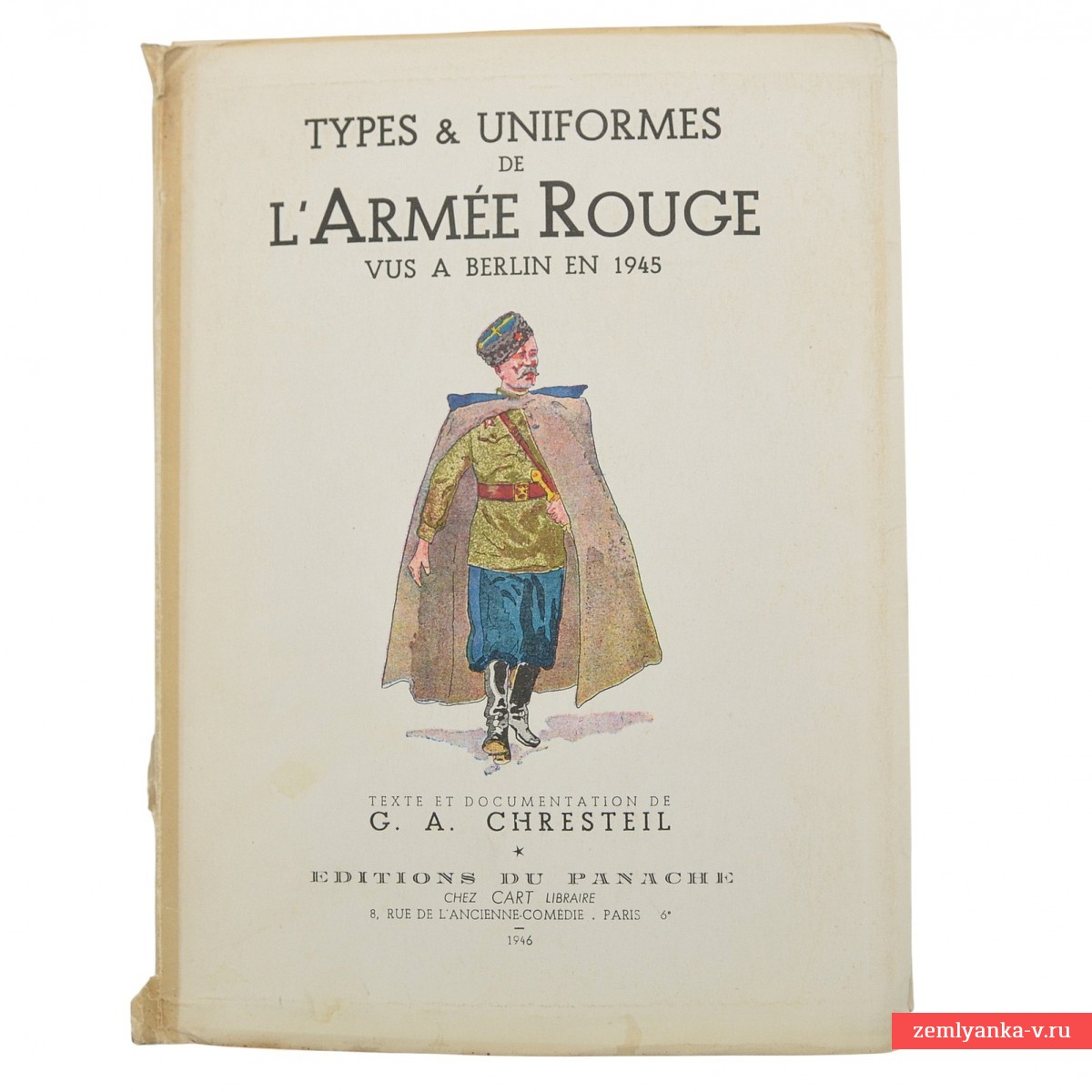 An interesting French-language publication, "Types and Uniforms of the Red Army Seen in Berlin in 1945," which is an illustrated album published in 1946 in Paris by Editions du Panache publishing house. The drawings were made by a famous German uniformist artist By Herbert Knötel. The publication includes a brochure with an explanatory text (about 18-19 pages) and 29 color drawings with images of uniforms, insignia, awards and emblems of the armed forces. The album captures the appearance of soldiers and officers of the Red Army (from tankers to Cossacks), as they were seen in Berlin immediately after the end of the war in 1945. The format is 18.5*14 cm. Decoration: Individual sheets in an illustrated paperback folder. Guarantee of authenticity. It's rare.