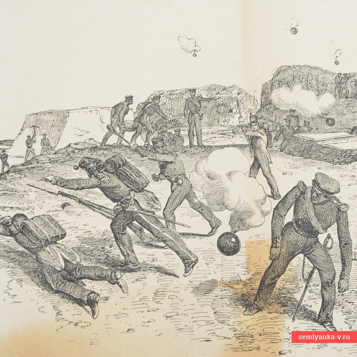 The original lithograph from the series "Episodes of the Russian-Turkish War" is in good collector's condition. The sheet size is 225*380 mm. Passepartout is modern. Printed in the printing house "Herausgegeben v. M. Trentsensky" in Vienna. Guarantee of authenticity.