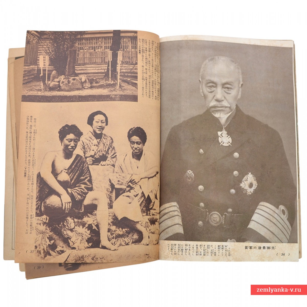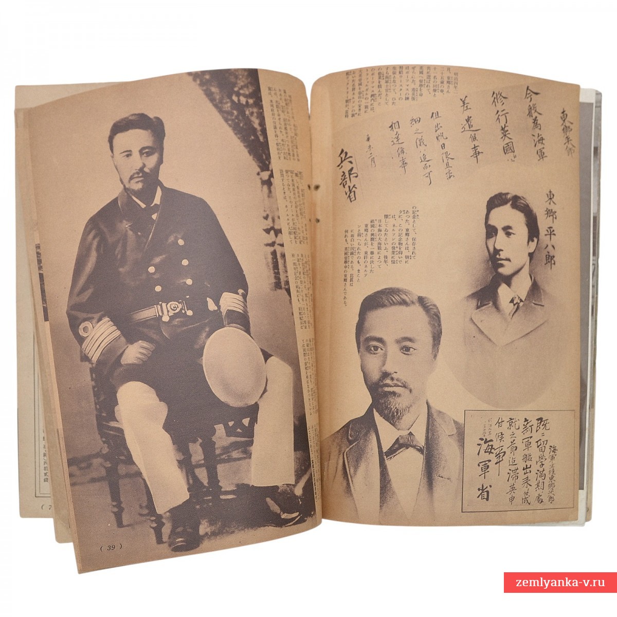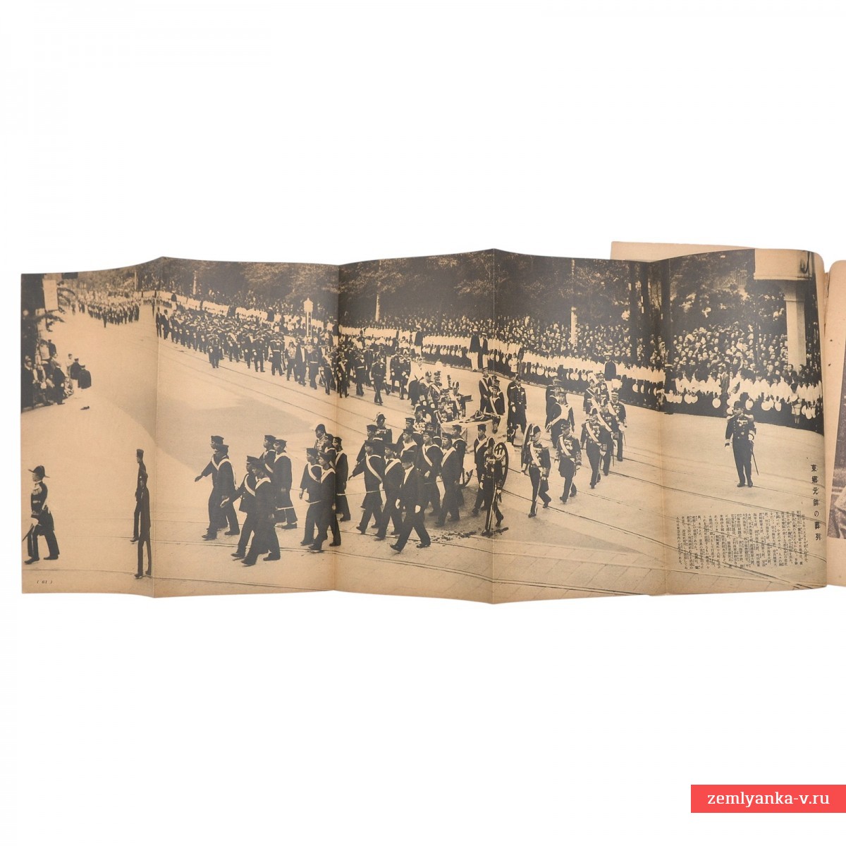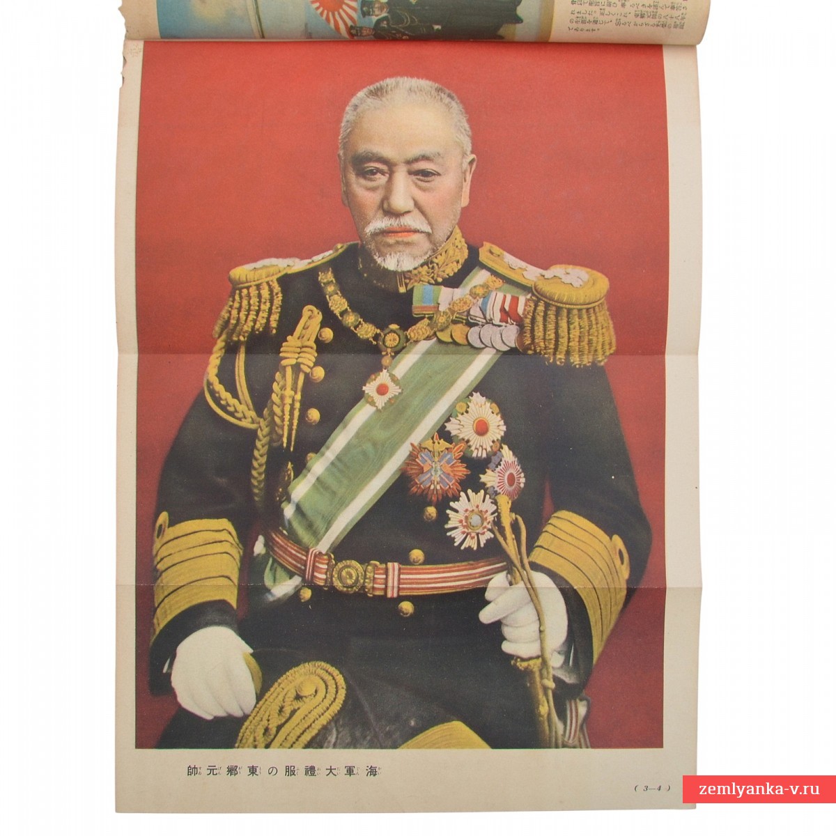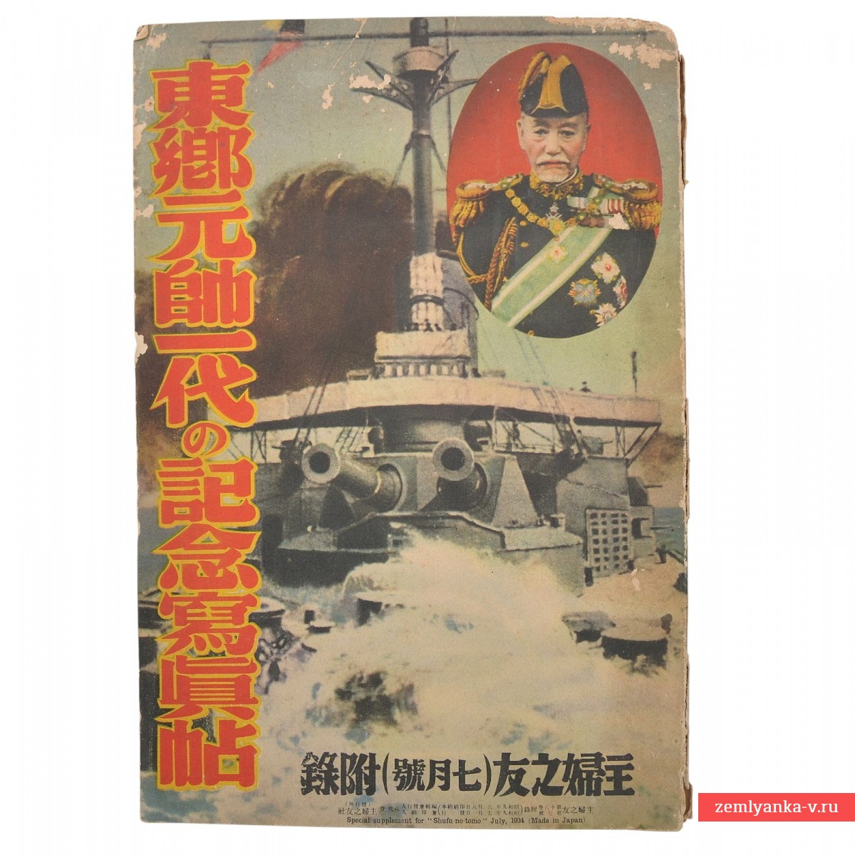 A special supplement to the Japanese women's magazine Shufu no Tomo ("Housewife's Friend") for July 1904, dedicated to the Admiral That Heihachiro. The admiral depicted on it is known as the hero of the Russo-Japanese War of 1904-1905, especially due to the decisive victory in the Battle of Tsushima, where he commanded the Combined Japanese Fleet and defeated the Russian Baltic Fleet. It contains several poster tabs. A rare edition.