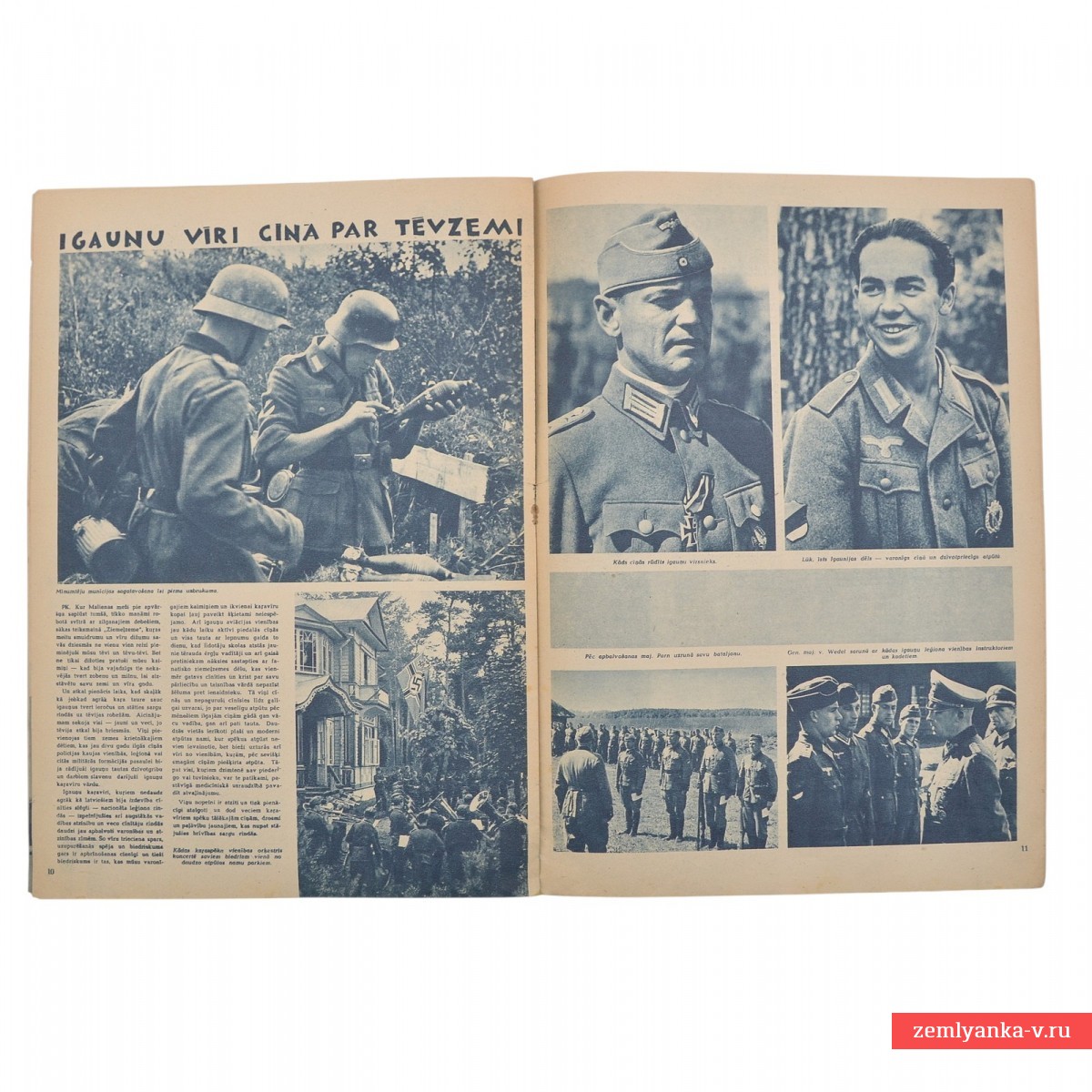 Paper. The magazine is in good collector's condition. The size is 355*253. Color illustrations and caricatures. The magazine was published in Riga from 1943 to 1945. It was aimed at both soldiers at the front and civilians in the rear, and contained articles, illustrations, and propaganda materials. It was published in Latvian. The editor was Alois Klishans. The cover depicts a man in a naval officer's cap. The inscriptions indicate the number (Nr. 2), the year (1944. G. FEBRUARY) and the price (CENA RM 0.40), as well as the full name of the publication along the left edge. Guarantee of authenticity.
