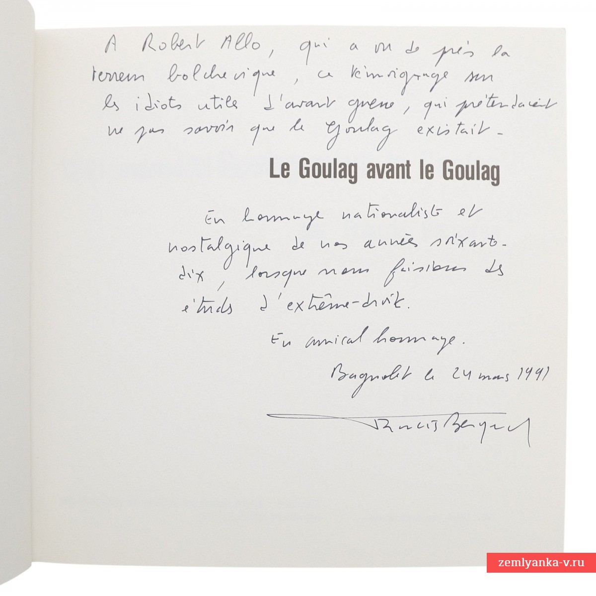 An original book published in 1987 to mark the 70th anniversary of the Bolshevik Revolution. The author, one of the leaders of the association For a Free Russia, explores a historical fact: information about the use of concentration camps by the Soviet system was known in the West long before the publication of Alexander Solzhenitsyn's works. A French anti—communist poster from 1928 (by Andre Galland) was used for the cover. The text on the poster reads: "Communism is a socialization. Your flocks, your possessions, they belong to me as well as to you." The format is 200*200 mm. The volume is 77 pages. In French.