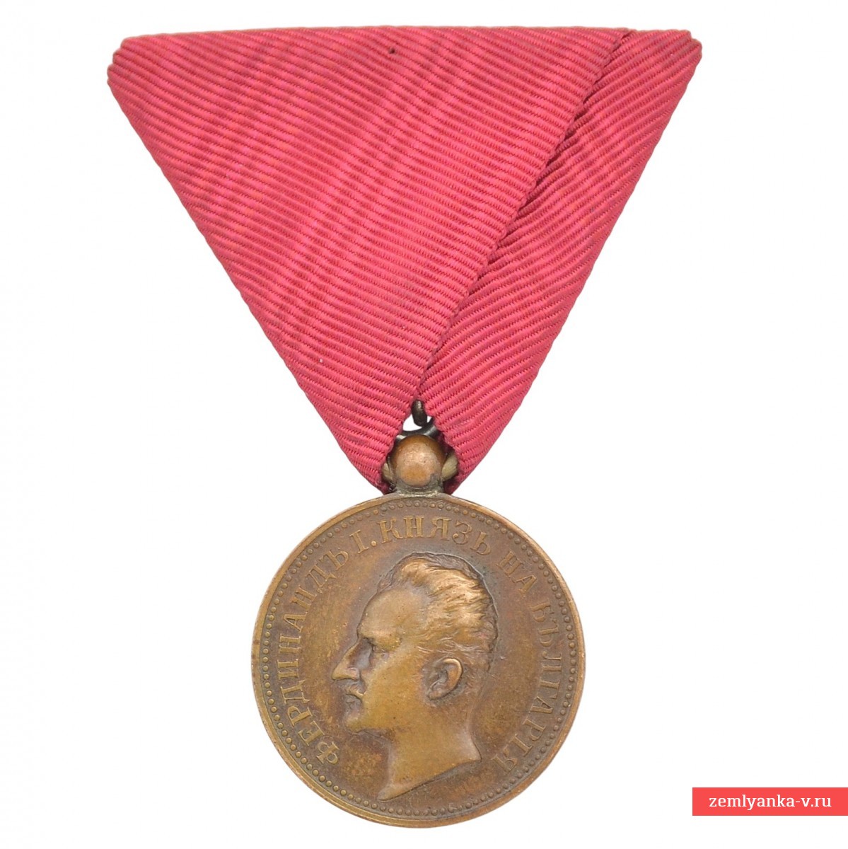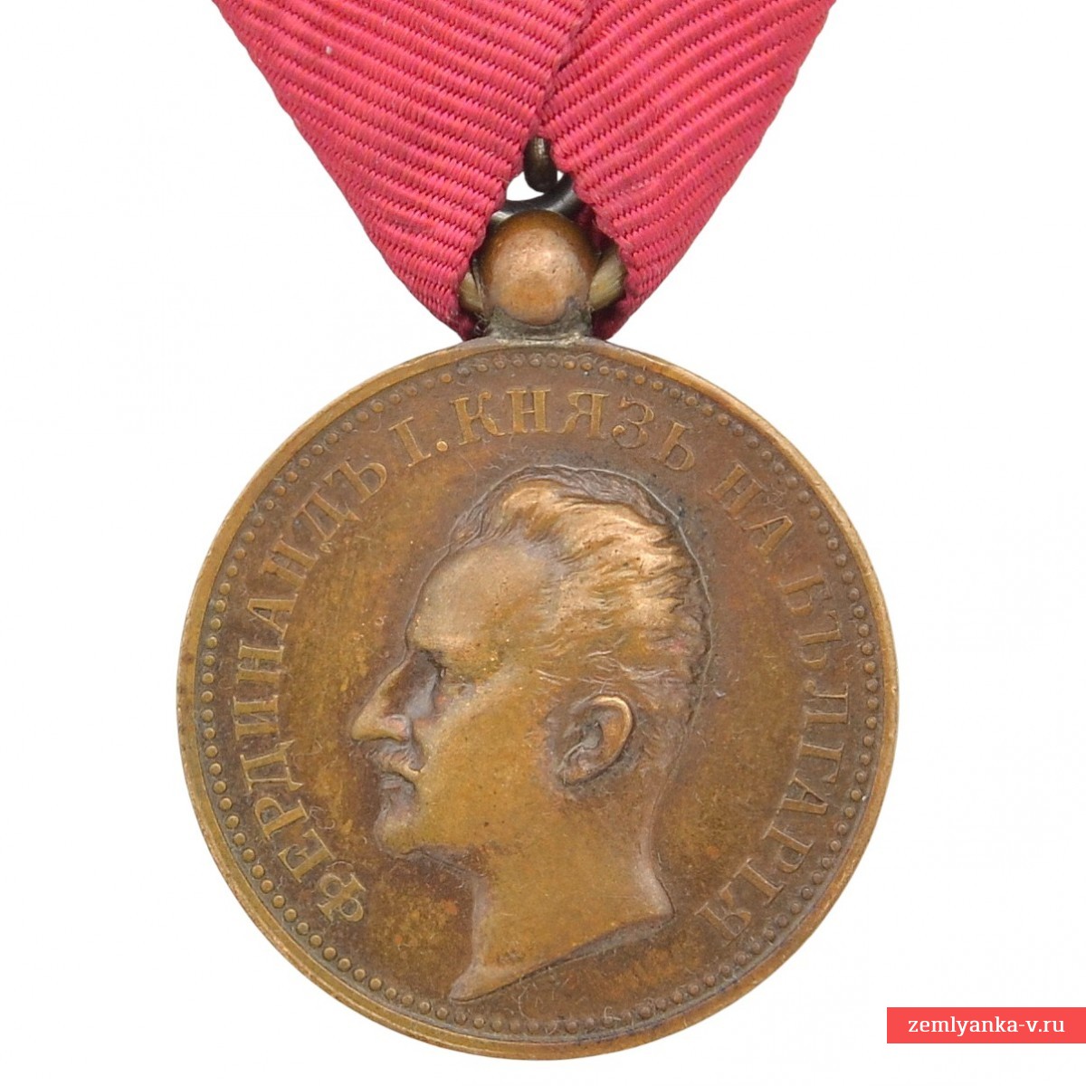 Bronze, stamping. The medal was established in 1881 and was awarded for outstanding services to the Bulgarian nation and the crown. Obverse (obverse side): the profile of the reigning monarch Ferdinand I is depicted, with an inscription in Bulgarian around the circumference: "FERDINAND I PRINCE OF Bulgaria" ("Ferdinand I Prince of Bulgaria"). The face of the "young head". Without the medallist's signature. Reverse (reverse side): in the center is the inscription "For Merit" (bolg.) in two lines, surrounded by a wreath of oak and laurel leaves tied with a ribbon, and a five-pointed star at the bottom (this side is not visible in the image, but is standard for the medal). The reward is on the original shoe. Initially, the medal was awarded on a crimson ribbon, but later it was approved to use the ribbon of the Order of Bravery (red) for services during the war and on the battlefield. Excellent condition. Guarantee of authenticity.