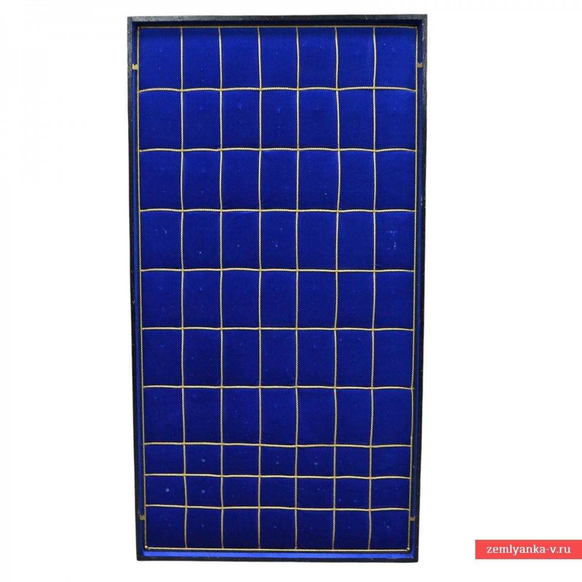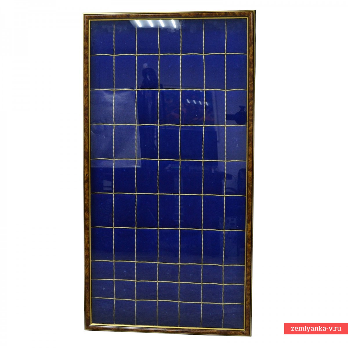 Wood, velvet, plywood, gold metallic cord. A beautifully executed showcase in which almost any type of awards can be placed. The front window is quick-detachable. The size is 690*650 mm. Only 1 pc is available.