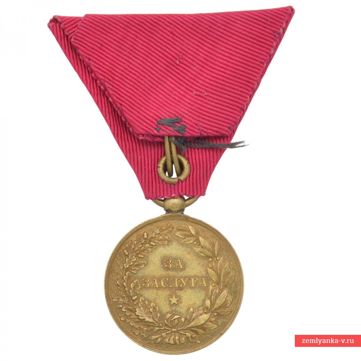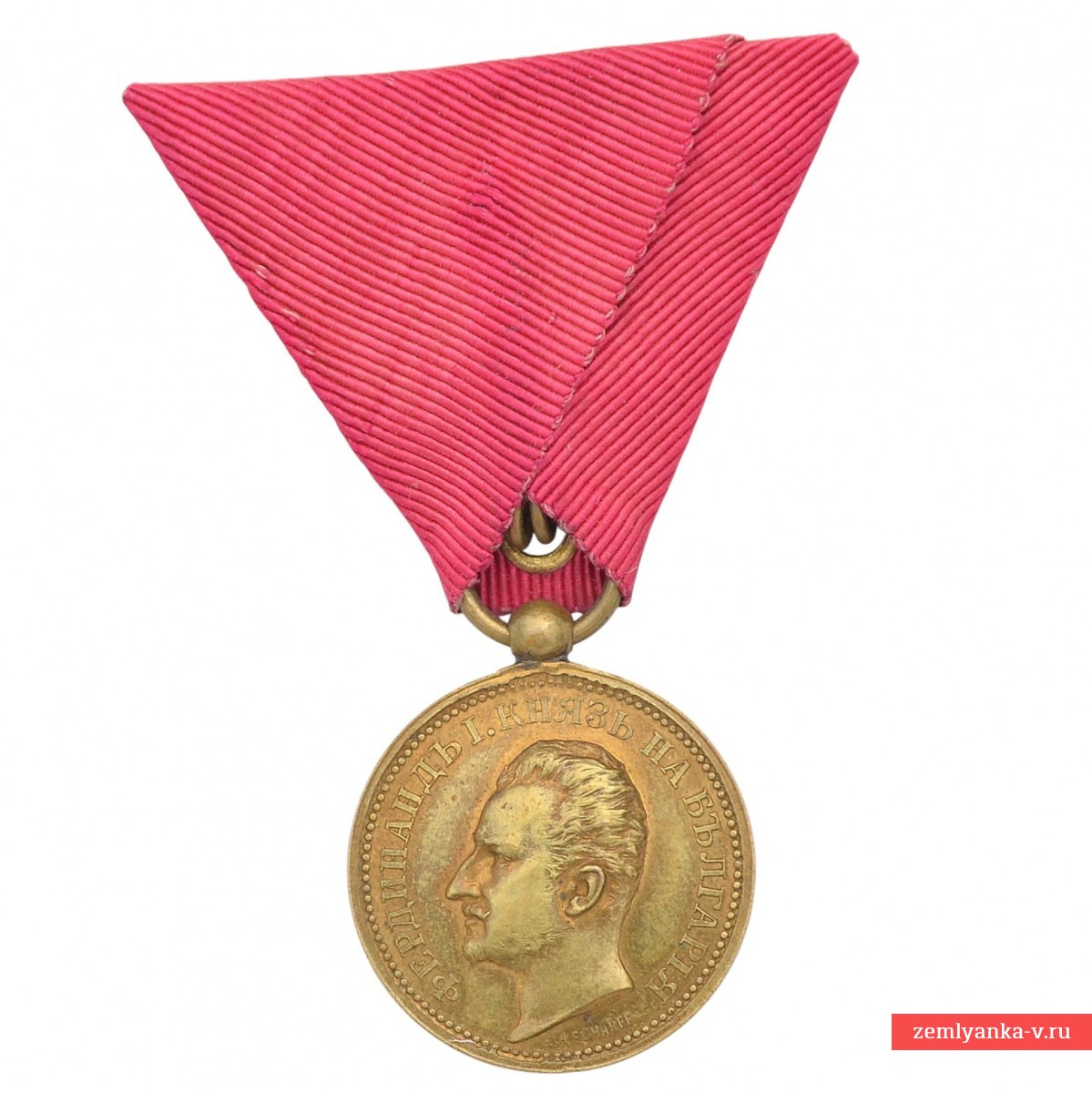 Bronze, stamping. The medal was established in 1881 and was awarded for outstanding services to the Bulgarian nation and the crown. Obverse (obverse side): the profile of the reigning monarch Ferdinand I is depicted, with an inscription in Bulgarian around the circumference: "FERDINAND I PRINCE OF Bulgaria" ("Ferdinand I Prince of Bulgaria"). Reverse (reverse side): in the center is the inscription "For Merit" (bolg.) in two lines, surrounded by a wreath of oak and laurel leaves tied with a ribbon, and a five-pointed star at the bottom (this side is not visible in the image, but is standard for the medal). The reward is on the original shoe. Initially, the medal was awarded on a crimson ribbon, but later the use of the ribbon of the Order of Bravery (red) for services during the war and on the battlefield was approved. Excellent condition. Guarantee of authenticity.