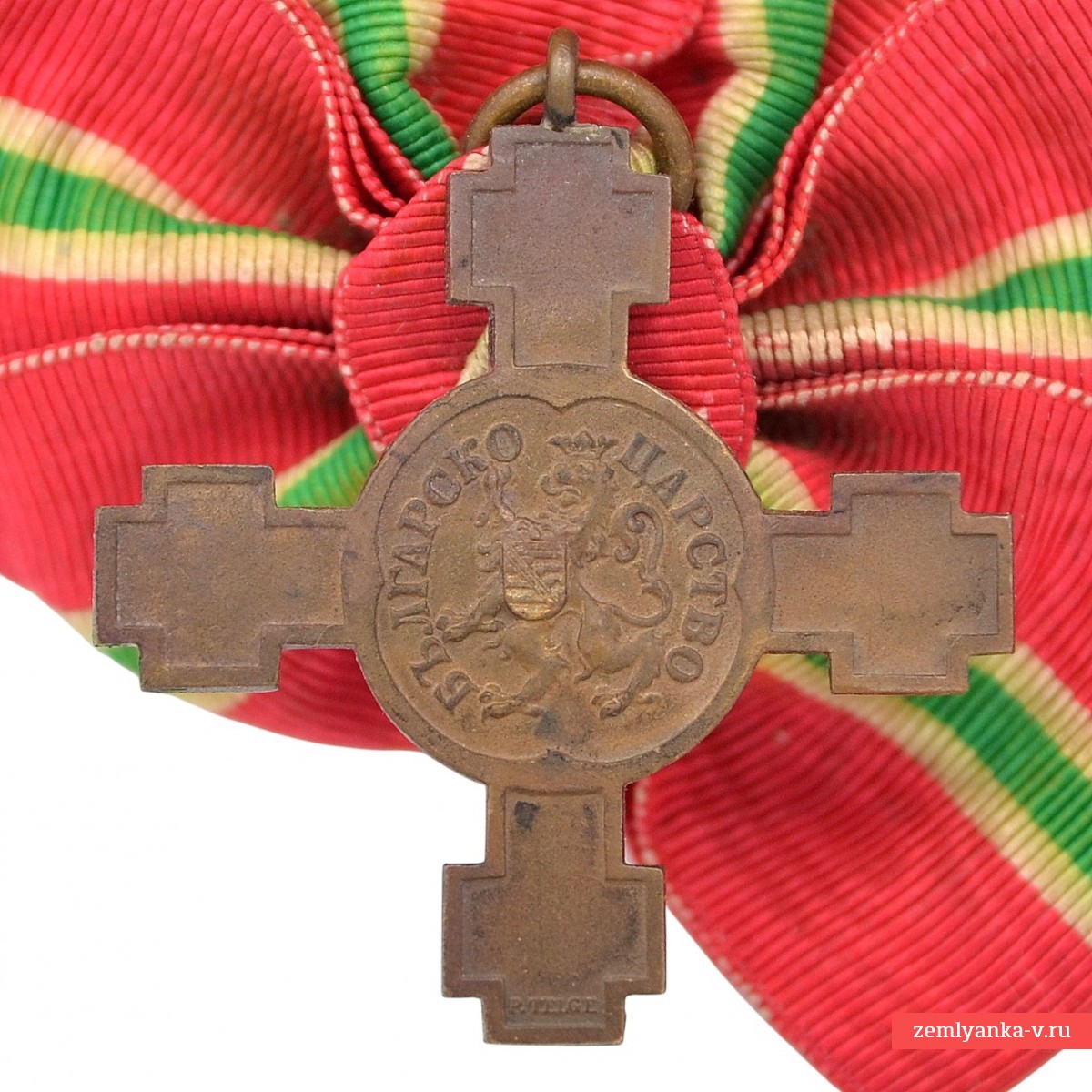 The original cross is in excellent collector's condition. Bronze, silk (moire), patination; stamping. The award has the shape of a Romanian cross (like the cross "For Crossing the Danube" in 1877). The manufacturer is Paul Telge's company, Berlin (the company's brand is "P. TELGE" at the bottom of the lower beam of the cross on the reverse side). It was to be worn on a red ribbon with a white central stripe through which a green stripe passes. Dimensions of the cross: The height with the eyelet is 44 mm, the width is 40 mm, and the thickness is 1.5 mm. Guarantee of authenticity.