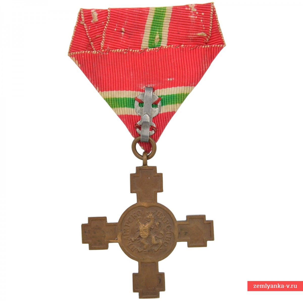 The original cross is in excellent collector's condition. Bronze, silk (moire), patination; stamping. The award has the shape of a Romanian cross (like the cross "For Crossing the Danube" in 1877). The manufacturer is Paul Telge's company, Berlin (the company's brand is "P. TELGE" at the bottom of the lower beam of the cross on the reverse side). It was to be worn on a red ribbon with a white central stripe through which a green stripe passes. Dimensions of the cross: The height with the eyelet is 44 mm, the width is 40 mm, and the thickness is 1.5 mm. The width of the tape is 32 mm. Guarantee of authenticity.