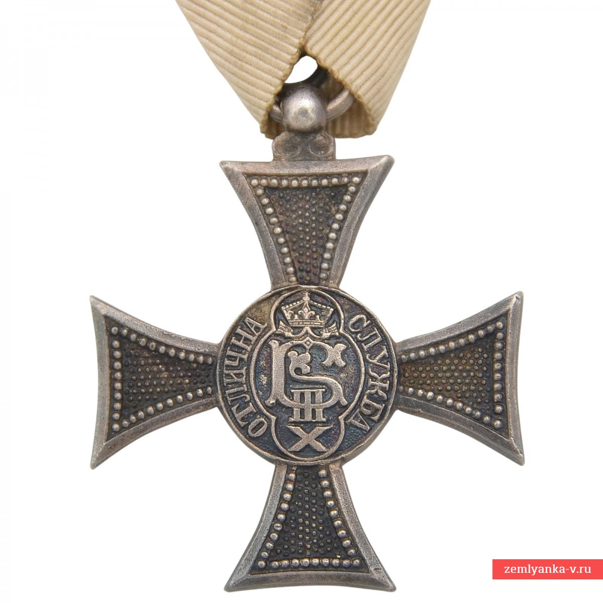 The cross "For 10 years of excellent service" was established by Prince Ferdinand I (1887-1908) on August 2, 1889. Issue 1918-1943. The Bulgarian Kingdom. During the reign of Bulgarian Tsar Boris 3 (1918-1943). Bulgarian servicemen were awarded for 10 years of impeccable service.