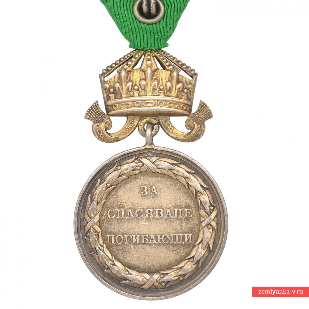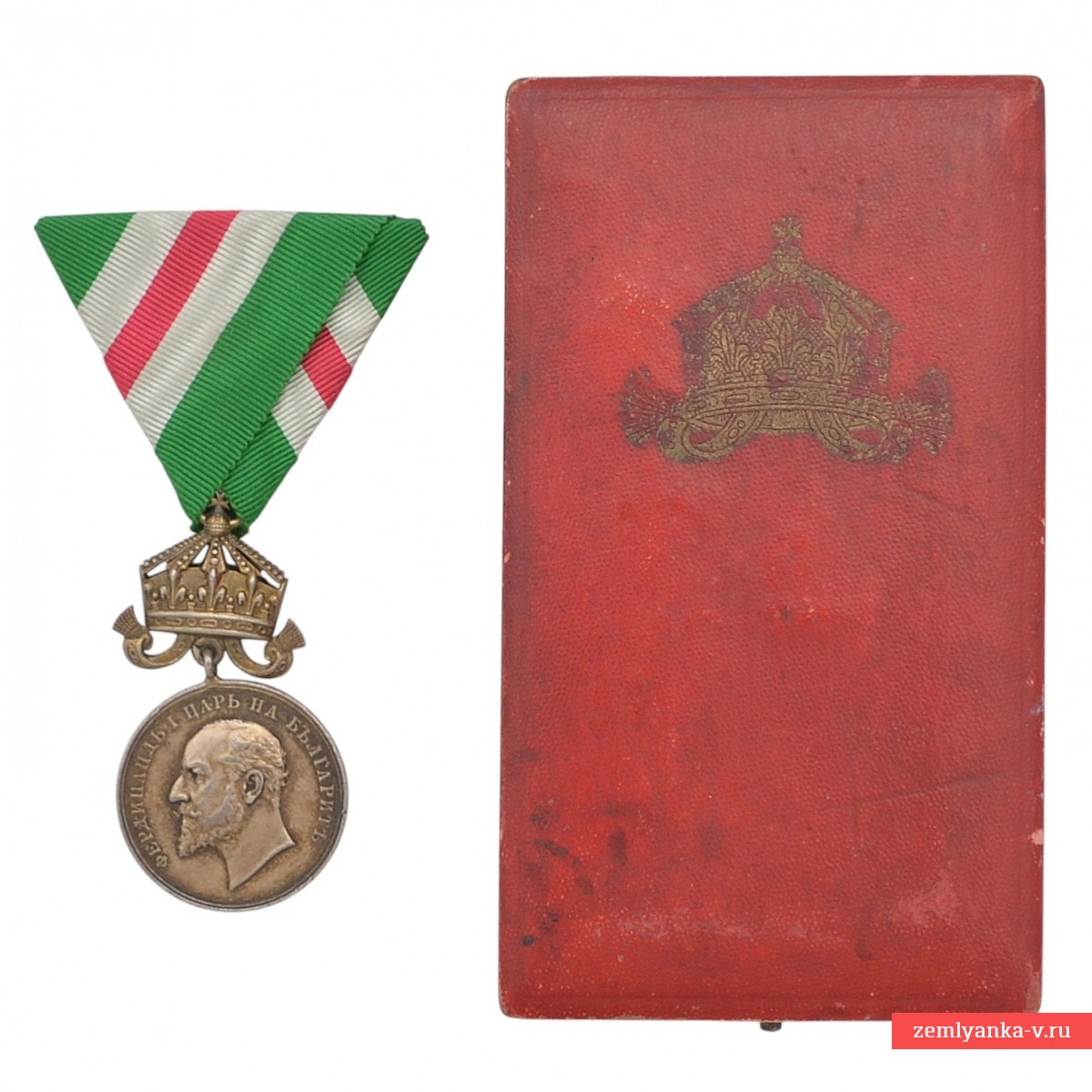 An extremely rare medal in very good collector's condition. 900-proof silver, stamping, gilding. The medal is equipped with an original shoe and case. The obverse of the medal features a portrait of the reigning monarch Ferdinand I. On the reverse, in the center, there is an inscription in three lines: "FOR THE SALVATION OF THE DEAD" (the old spelling of the Bulgarian language), framed by a laurel wreath. The medal is topped with a royal crown with fluttering ribbons. Guarantee of authenticity.