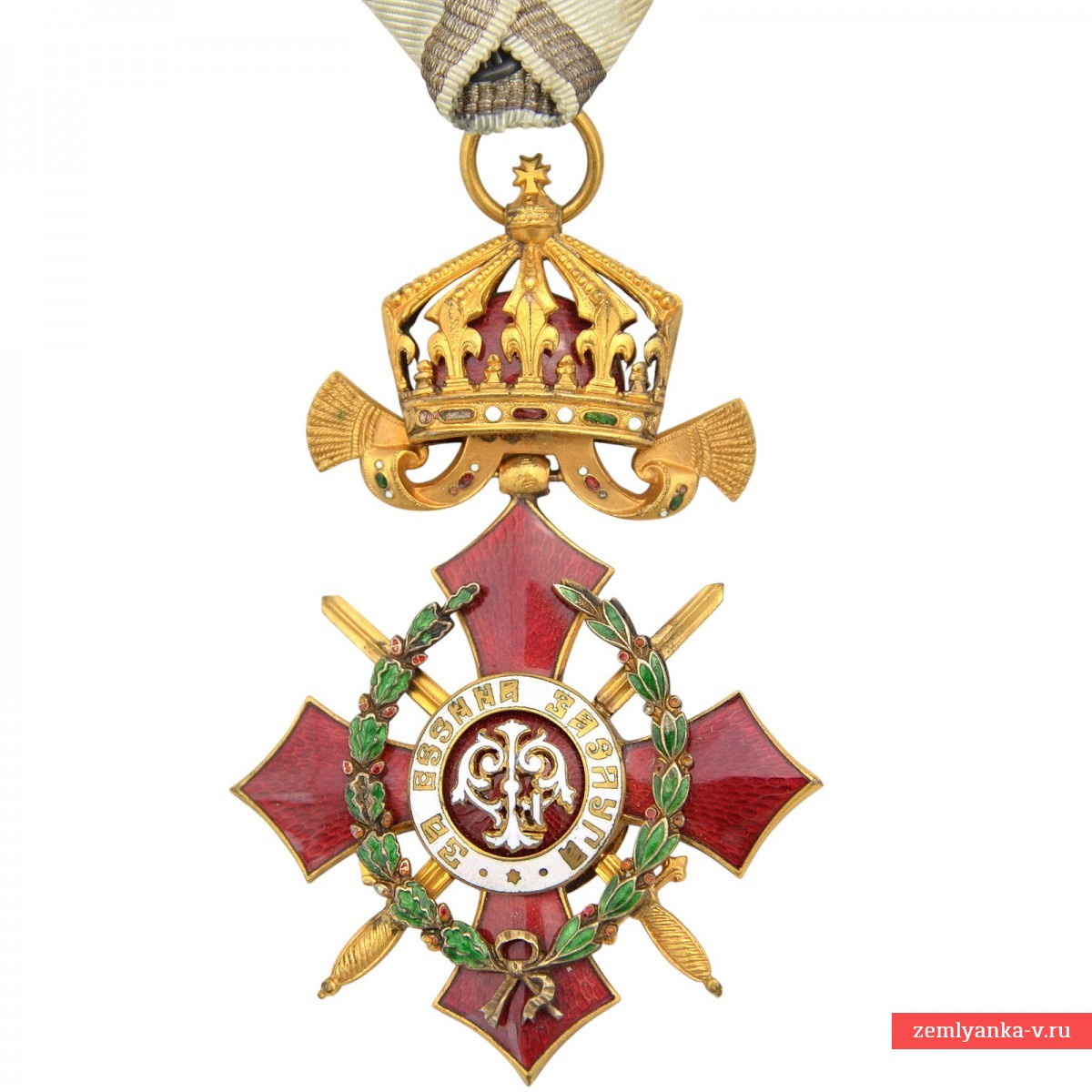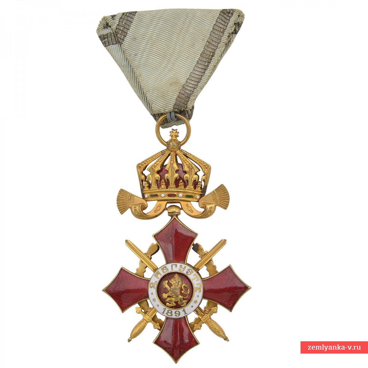 Bronze, gilding, enamel. The original badge of the order is in excellent collector's condition. The mark on the original shoe. In the center of the obverse is the monogram of the founder, Prince Ferdinand I, with the inscription "FOR MILITARY SERVICE" in a circle on a white enamel background. In the center of the reverse is a Bulgarian lion with a coat of arms shield on its chest and the date of foundation of the Order of Civil Merit is August 2, 1891. The suspension link is made in the form of a royal crown, which is typical for most degrees during the monarchical period. The presence of a green enamel laurel wreath on the cross itself indicates that the award was given for special wartime distinctions (the so-called "military honors" category). The crossed swords between the ramen of the cross also confirm the martial nature of the merits. Guarantee of authenticity.
