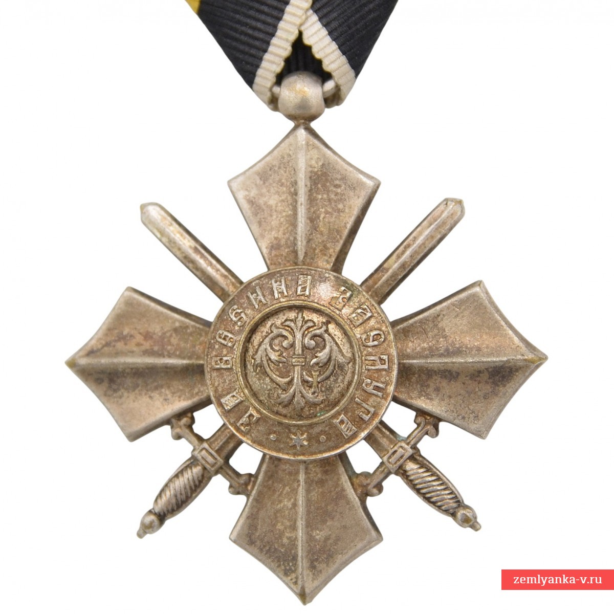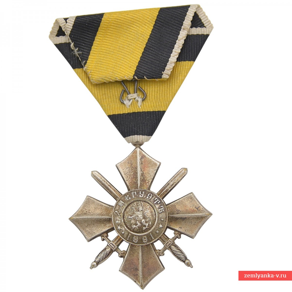 Bronze, silvering, stamping. The original badge of the order is in excellent collector's condition. The mark on the original shoe. In the center of the obverse is the monogram of the founder of the order, Tsar Ferdinand I (intertwined letters "FF" and the Roman numeral "I").In the center of the reverse is a Bulgarian lion with a coat of arms on its chest. There is an inscription in Bulgarian around the circle: "FOR MILITARY MERIT" (For military merit) and the date of foundation of the order is MAY 18, 1900. The presence of crossed swords between the rays of the cross indicates the military nature of the award. Guarantee of authenticity.
