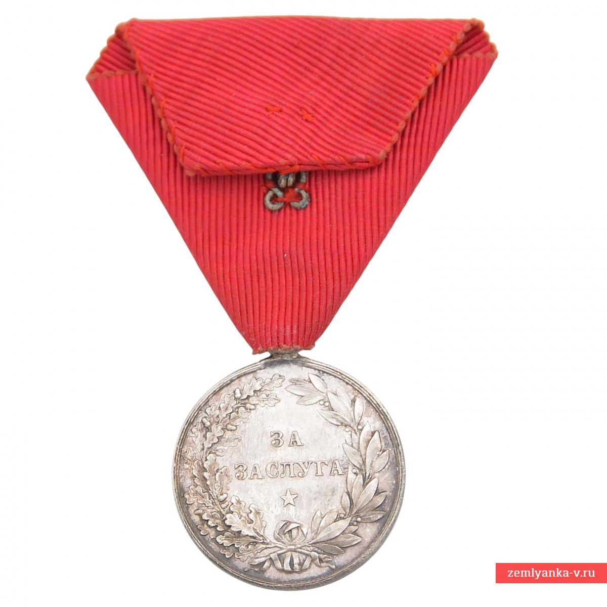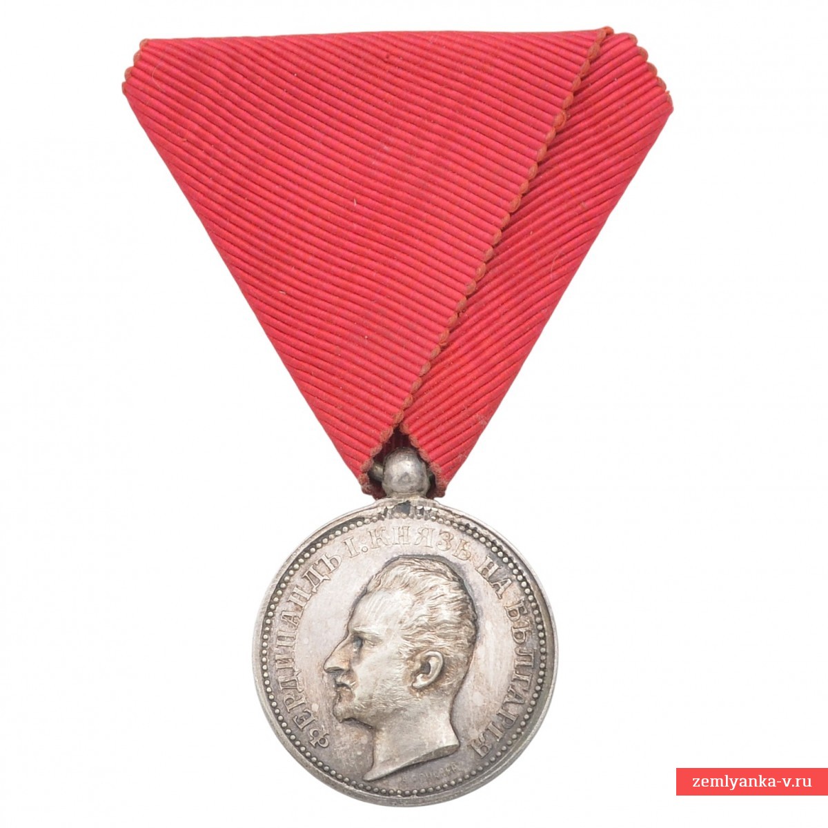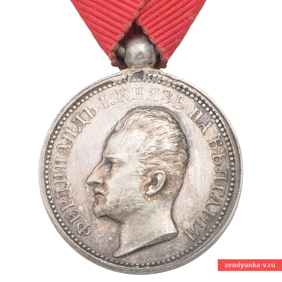 Silver, stamping. The medal was established in 1881 and was awarded for outstanding services to the Bulgarian nation and the crown. Obverse (obverse side): The profile of the reigning monarch Ferdinand I is depicted, with an inscription in Bulgarian around the circumference: "FERDINAND I PRINCE OF Bulgaria" ("Ferdinand I Prince of Bulgaria"). Reverse (reverse side): in the center is the inscription "For Merit" (bolg.) in two lines, surrounded by a wreath of oak and laurel leaves tied with a ribbon, and a five-pointed star at the bottom (this side is not visible in the image, but is standard for the medal). The reward is on the original shoe. Initially, the medal was awarded on a crimson ribbon, but later the use of the ribbon of the Order of Bravery (red) for services during the war and on the battlefield was approved. Excellent condition. Guarantee of authenticity.