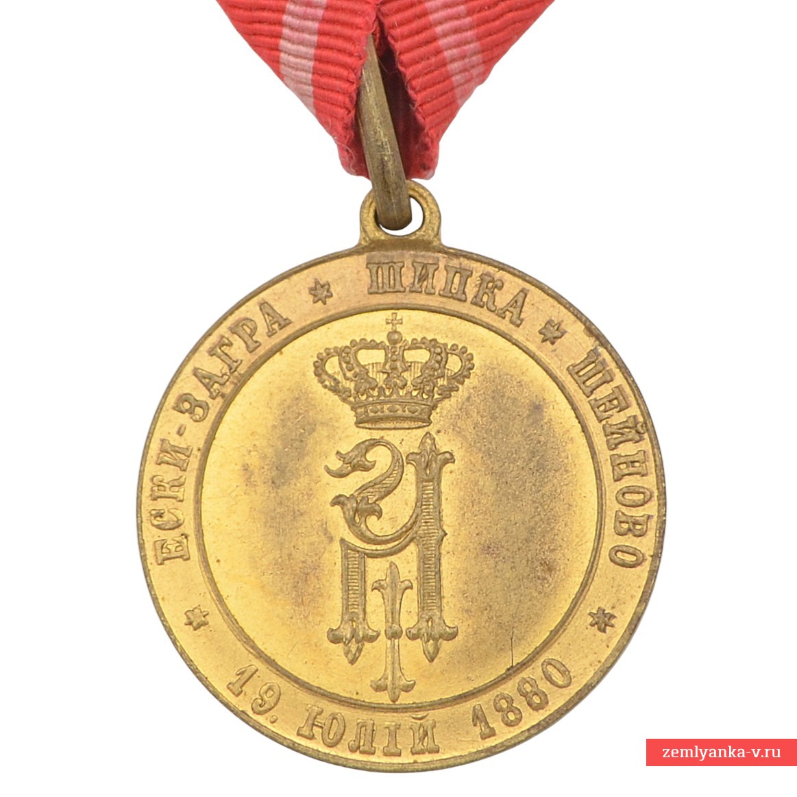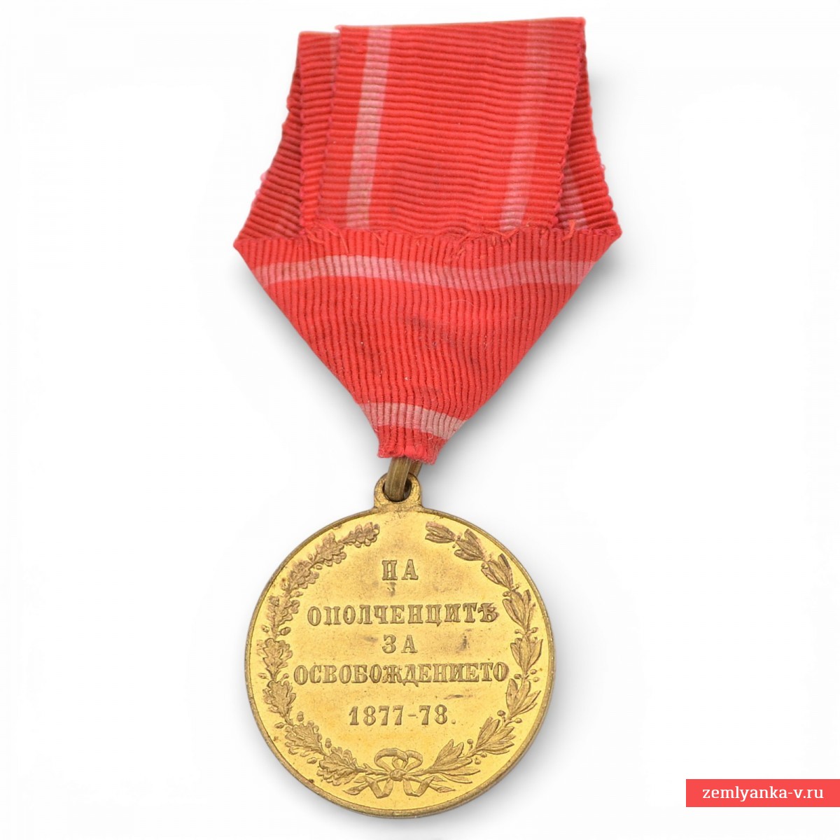 Bronze, gilding, stamping. Remnants of the stamp gloss. In the center of the obverse is the monogram of Prince Alexander I under the princely crown. There are inscriptions around the circumference indicating the locations of key battles and the date.: ESKI ZAGRA (Stara Zagora), SHIPKA, SHEINOVO, JULY 19, 1880 (date of establishment of the medal). On the reverse side of the medal there is usually an inscription in Bulgarian: "TO the militia FOR the Liberation of 1877-1878" (to the Militia for the liberation of 1877-1878). It was established on July 19, 1880. It was awarded to Bulgarian militia members who took part in the Russian-Turkish War of 1877-1878. Very rare.