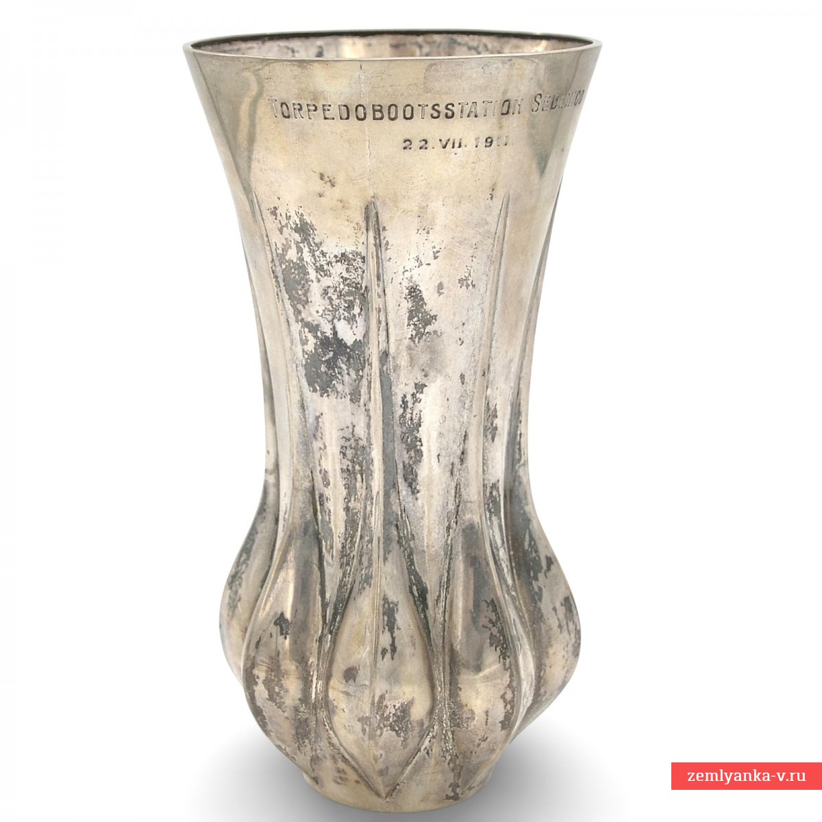 The original cup is in excellent condition. Officer's prize of the naval base of torpedo boats in the Adriatic Sea. The Sebenico naval base in the Adriatic belonged to the Austrian Navy, but also in The First World War and during During World War II, the German Navy was also based on it. Silver 800 proof, engraved. Height: 213 mm, diameter of the upper part 111 mm. Weight: 350 grams. The manufacturer is Gebruder Deyhle Schwabische Gmund (the company was founded in 1820). The stigma of Austrian imports. The weight is 350 grams. Guarantee of authenticity.