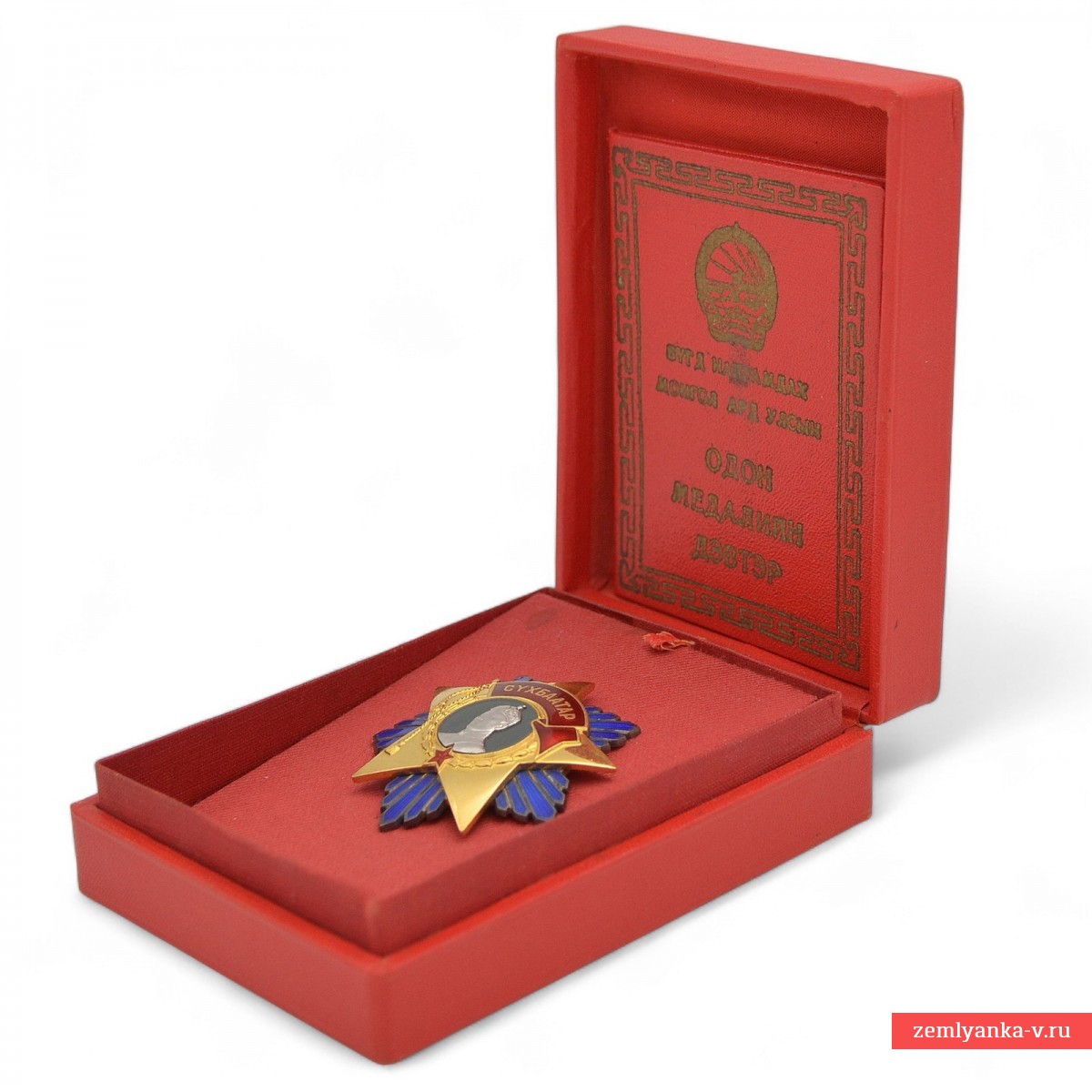 The Order of Sukhbaatar (mong. Sukhbaataryn odon) is the highest (until 1992) state award of Mongolia. The Order was established on May 16, 1941 in honor of the leader of the Mongolian liberation movement and the People's Revolution of 1921, Damdin Sukhbaatar, as an analogue of the Soviet Order of Lenin. In 1992, the Order of the Polar Star replaced the Sukhbaatar Order in the second place in the award system of Mongolia.