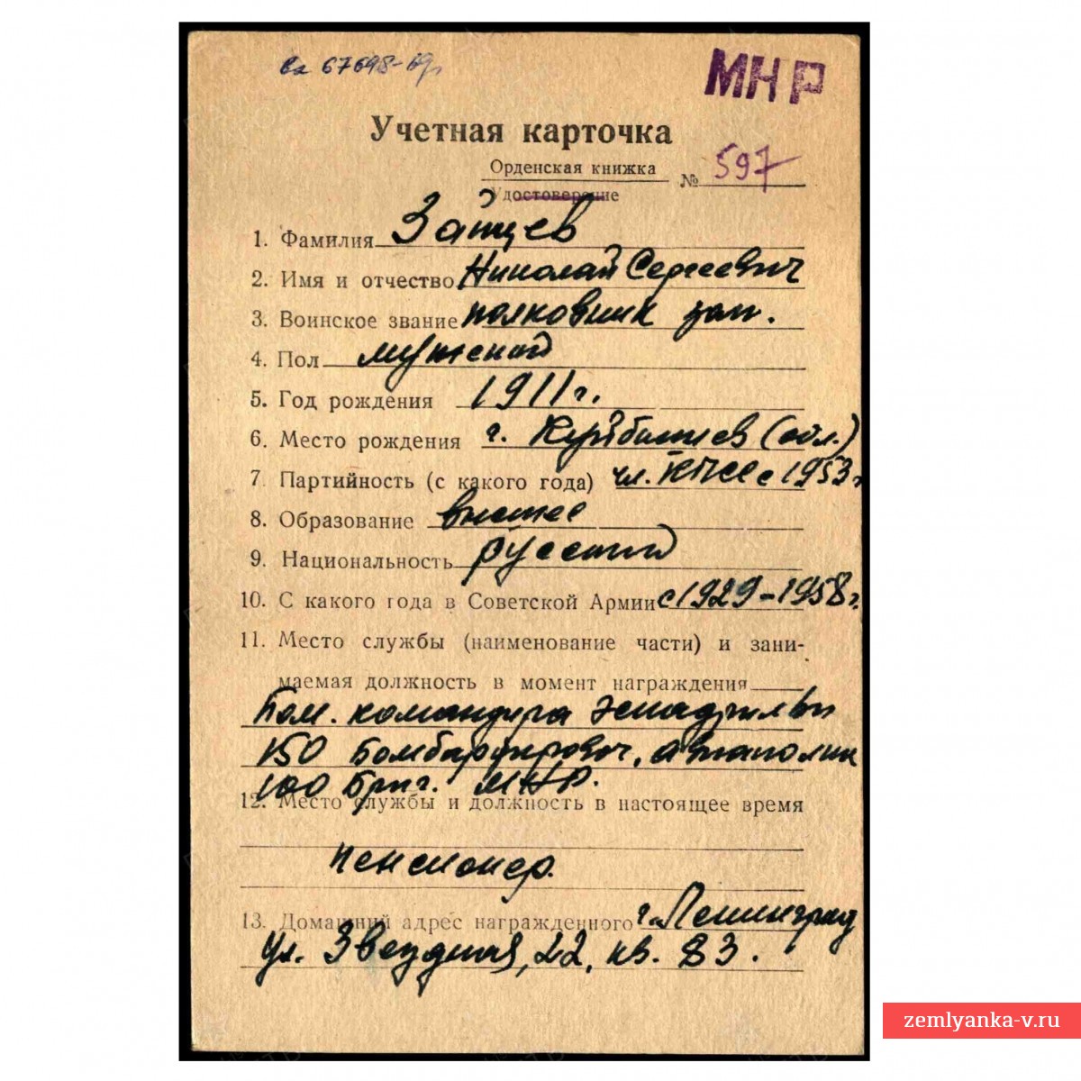 By April 1945, Guards Lieutenant Colonel Nikolai Zaitsev commanded the 80th Guards Bomber Aviation Regiment (1st Guards Bomber Aviation Division, 6th Guards Bomber Aviation Corps, 2nd Air Army, 1st Ukrainian Front). By that time, he had flown 111 combat missions, inflicting heavy losses on the enemy in manpower and military equipment.