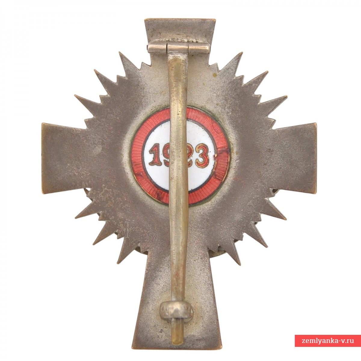 The original Ehrenzeichen vom Roten Kreuz, established in 1914 and renovated during the First Republic of Austria (circa 1923). The Officer's Cross (Offizierskreuz) is a Latin cross made of silver, covered with red and white enamel. In the center is a medallion with a red cross on a white background, surrounded by the inscription "PATRIAE AC HUMANITATI" (To the Fatherland and humanity) and the date "1914" or "1923" (depending on the release period). This degree is distinguished by the presence of silver rays (radiance) between the shoulders of the cross and a laurel-oak wreath covered with green enamel. Chipping and restoration of the enamel fragment on the reverse. Guarantee of authenticity. A rarity!