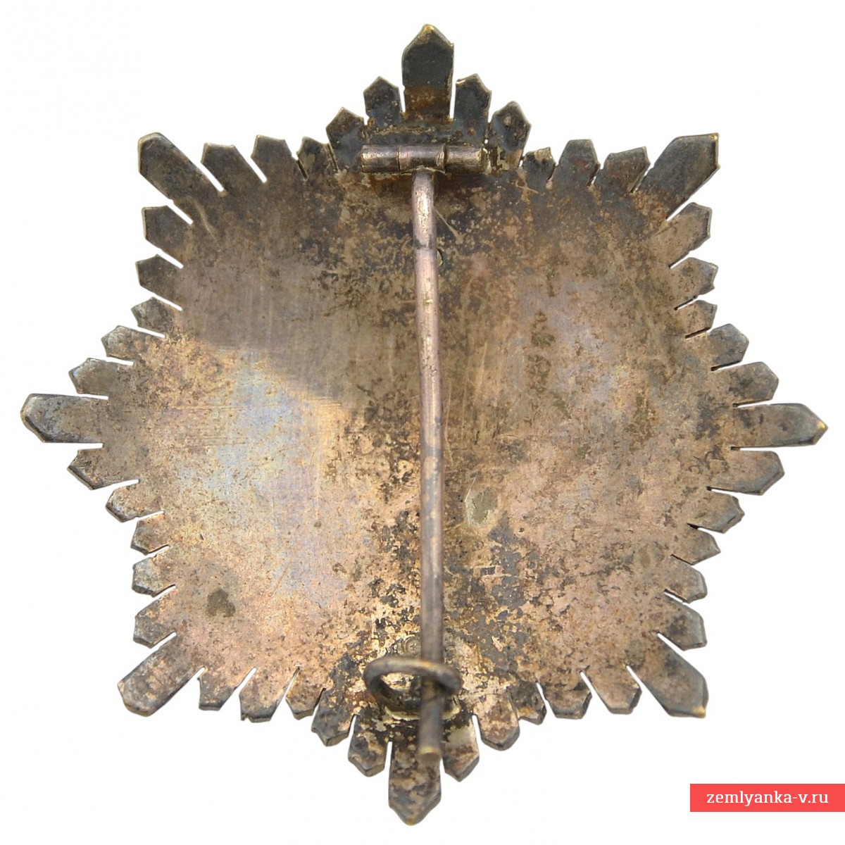 Silver, enamel, stamping, gilding. The award is made in the form of an eight-pointed radiant star (breastplate). In the center is an enameled shield with the coats of arms of Castile (castle) and Leon (lion), surrounded by a blue ring with the inscription "AL MERITO EN CAMPAÑA" ("For services to the campaign"). Four golden swords are placed crosswise between the beams. There is a crown at the top of the cross, a castle at the bottom, and lions on the sides. The reverse is smooth. Excellent condition. Guarantee of authenticity