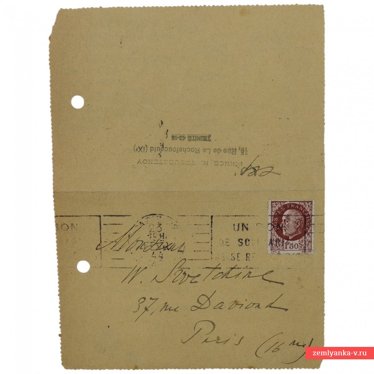 The original letter is in good collector's condition. Traces of pamphletting. With the handwritten signature of Prince Nikita Trubetskoy. The size is 115*155 mm. Addressed to Colonel L-Gv. Preobrazhensky Regiment to Vladimir Svechin. Guarantee of authenticity.