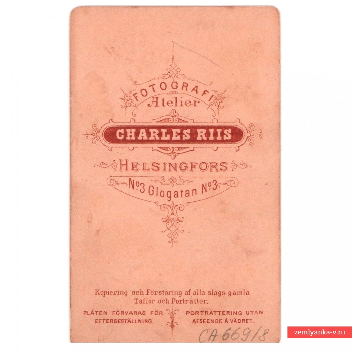 A rare photo in excellent collector's condition. Photographer Konrad Reis, Helsinki. Portrait session. The colonel is armed with an officer's infantry saber of the 1865 model, with a strap. On his chest is the Order of St. Anna's 3 art. and a medal. In his hands is a leather officer's helmet of the 1844 model. Since the beginning of the 19th century, officers who held the positions of adjutants were given uniforms of special colors: silver device, red collar, all the edging on the uniforms are white. Those who were registered in the infantry were entitled to epaulettes of the guards infantry pattern, those who were registered in the cavalry – metal scaly ones. In our case, the colonel's epaulettes are depicted. An aiguillette is fastened under the right epaulette. All this made it possible to identify the adjutant on the battlefield from afar, relaying orders from high authorities. Over the years, the cut of the uniform changed, but the colors remained the same until 1917. For special assignments, officers were supposed to wear the same uniform as adjutants, but without an aiguillette. The number of adjutants and officers for assignments has always been small, so their photographs are quite rare, and early photographs are practically not found at all. Guarantee of authenticity.