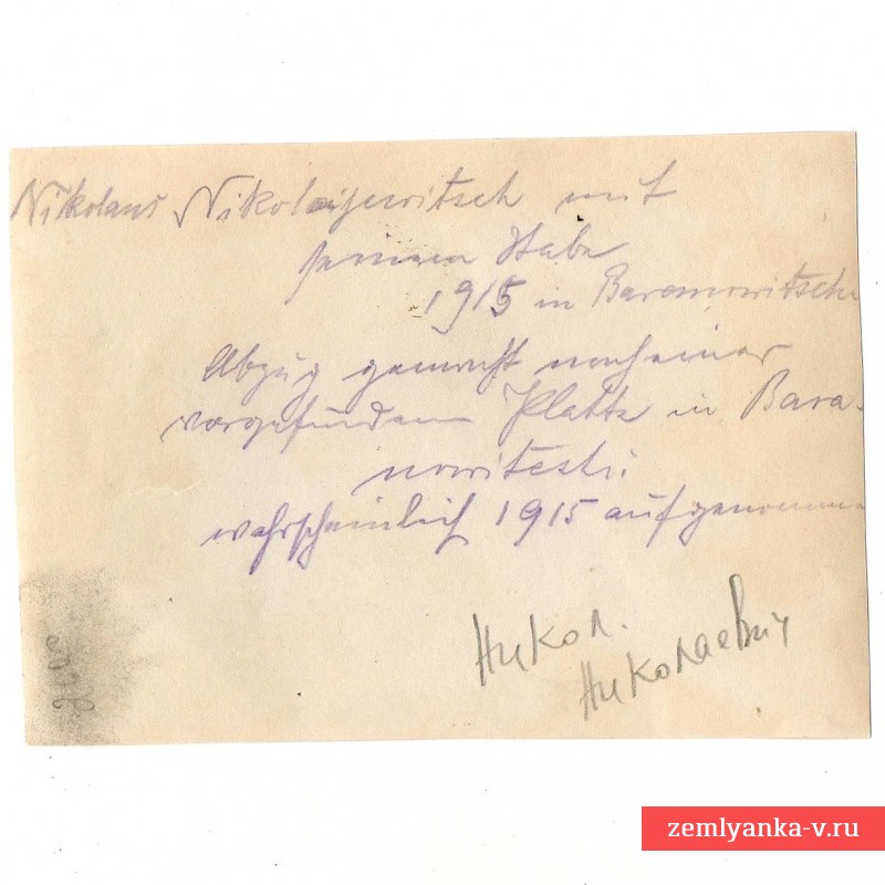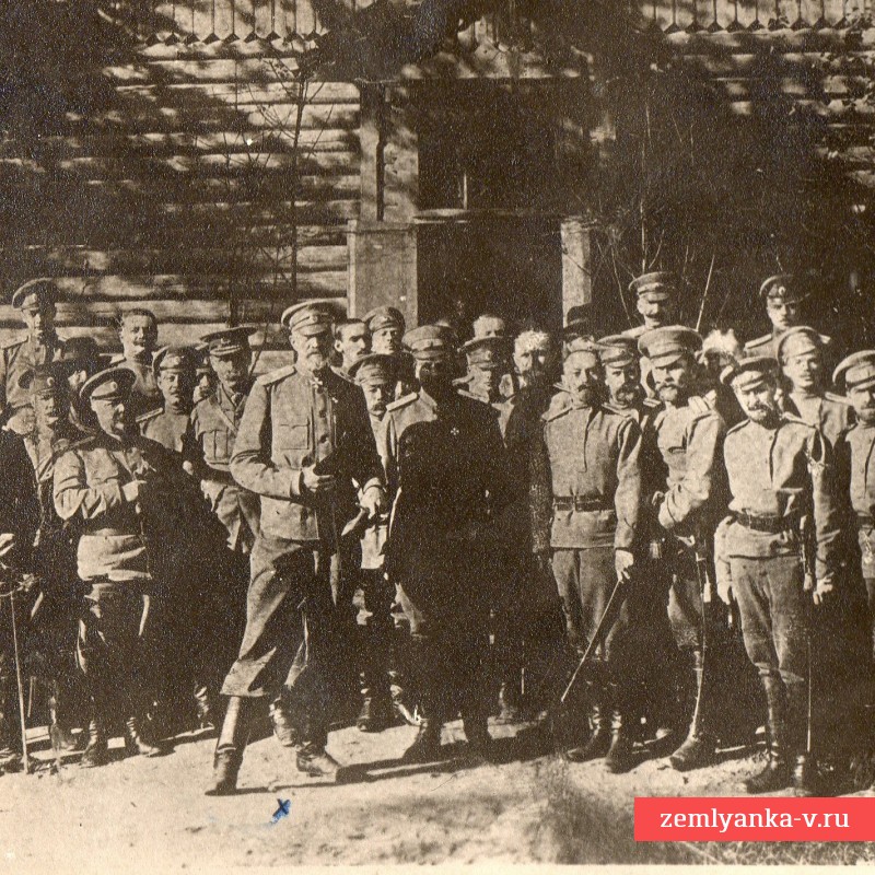 Grand Duke Nicholas Nikolaevich the Younger, before the war commander of the Petersburg military district, after the start of world war he was appointed Supreme Commander of the Russian army, which he held until 23 August 1915 when the Emperor Nicholas II in terms of critical failures at the front decided to take the Supreme military power in their hands. The figure of the Grand Duke, noted for high growth and expressive "noble" face, immediately stands out in the Central part of the photo. To the right of the Grand Duke – the chief of Staff of the Supreme Commander, Lieutenant-General (from 22 oktyayurya 1914, General of infantry), N.N. Yanushkevich. Over-the-shoulder peeking the Russian commander in chief British representative at the Rate of General D. Williams. In the left part of the first row, to cap with embroidery or French General Marquis de Lagish, or the Belgian General, Baron de Rykiel. In the literature, to take to believe that this photo was taken near the house of the quartermaster General, immediately after the arrival of Russian military staff officers and representatives of the allied powers in a Bid, located near Baranovichi. Size 80*112 mm Guarantee of authenticity.