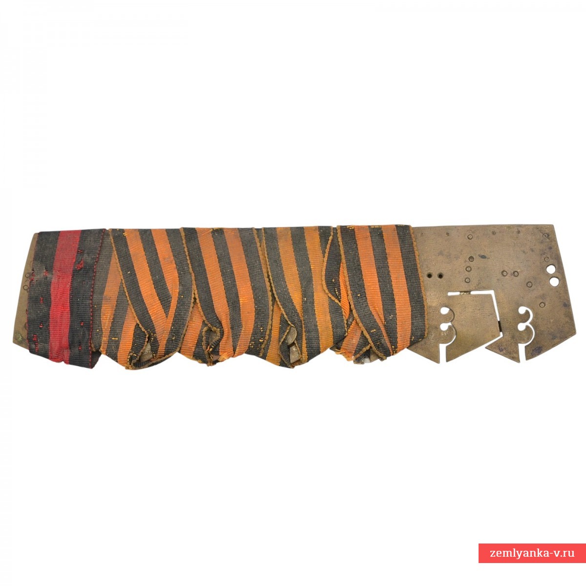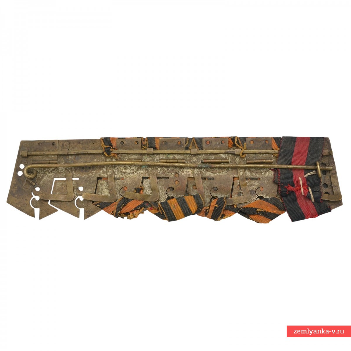 An extremely rare 7-award shoe that belonged to the St. George knight of 4 awards (it is quite possible that it was complete, because the bows could have been lost). Apparently, during the First World War, he received his first officer's rank, after which he was awarded the Order of St. Peter the Great. Vladimir. The tapes on the last two fragments of the shoe are lost. Guarantee of authenticity.