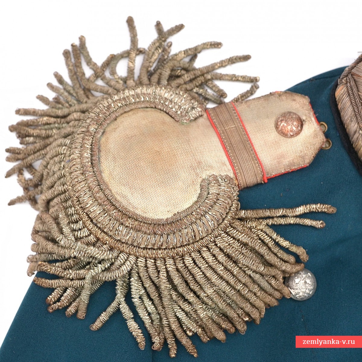 A rather rare and interesting uniform, sewn from castor "tsarev" color. Size 44-46. The combination of silver embroidered buttonholes on the cuffs, red edging and dark green lining of the skirt of the uniform with its infantry cut leaves no other options, except that initially the collar was dark green cloth, and the uniform belonged to an officer who served in places subordinate to the Main Quartermaster Department. The velvet collar was installed in the process of existence. The item is extremely rare, and due to the presence of embroidered buttonholes on the collar, it is quite suitable for qualified restoration. Guarantee of authenticity.