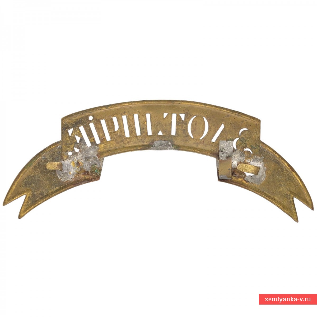 The original tape is in stock collector's condition. It is an exceptional rarity in such preservation. Brass, stamping. The letters are slotted. An enlarged ribbon, presumably for wearing on a shako. Guarantee of authenticity.