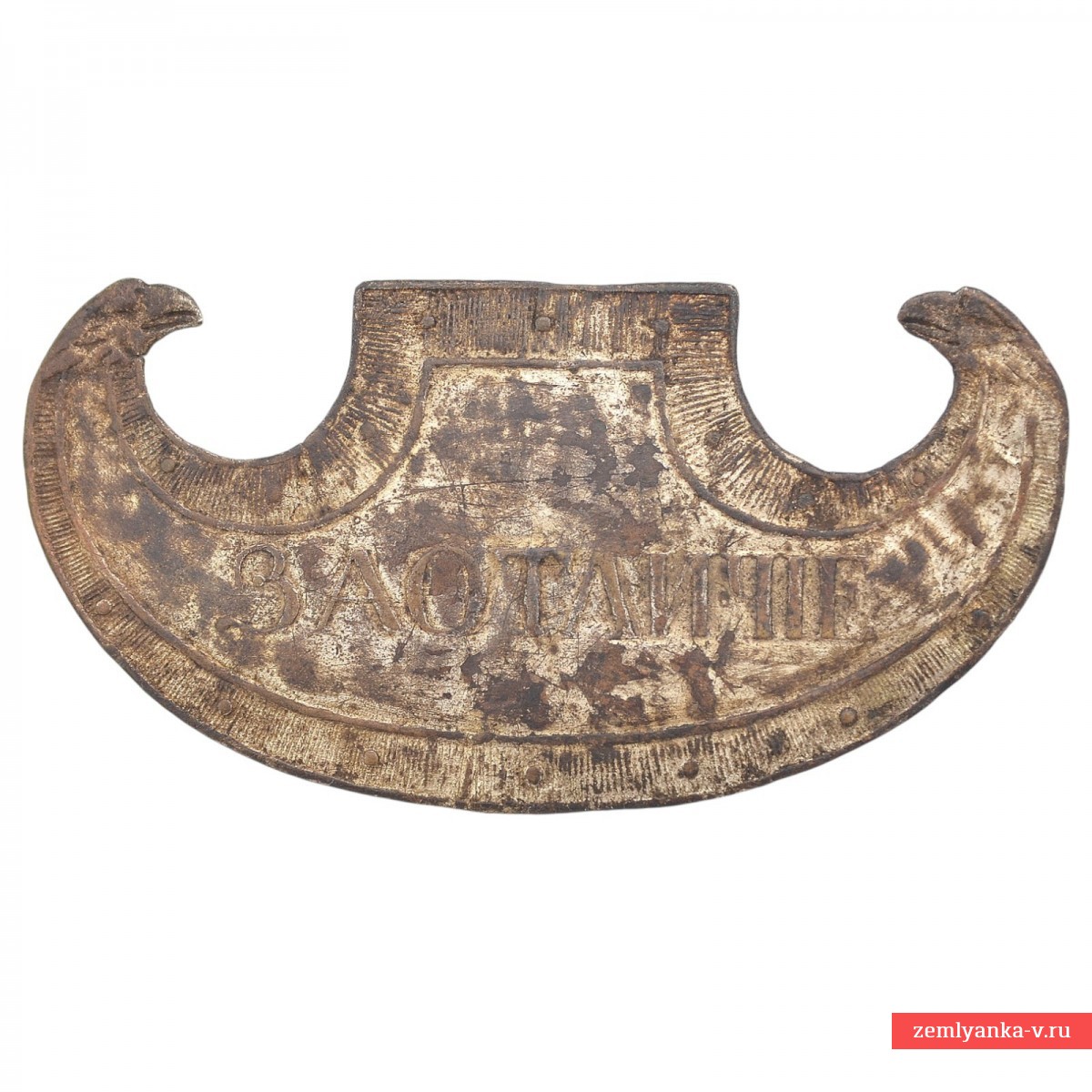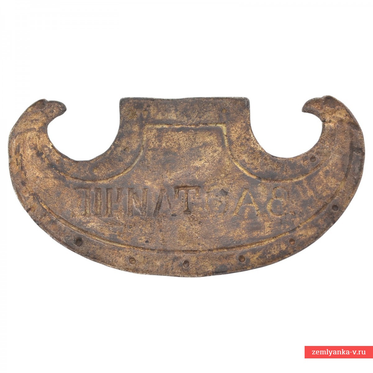 An extremely rare cockade in good collector's condition. Copper alloy, silver plating, stamping. Size 46*92 mm. On December 4, 1812, A.I. Gorchakov reported that the emperor "deigned to give badges to both officers and lower ranks with the inscription "For Bravery" to the 20th Chasseur regiment, which distinguished itself during the present war with courage and bravery. Attached to the letter was a drawing of these plates, which had the shape of an ancient Greek light shield. The highest order of May 30, 1814, read: "To the Hussar regiments: Sumy, Grodno, Lubensky and Chuguevsky lancers for the distinction shown in all battles, and especially on October 2, 813 at Leipzig <...> complain <...> signs mounted on shakos with the inscription for distinction ...". Even soldiers' cockades of this type are extremely rare, let alone officers ... a guarantee of authenticity.