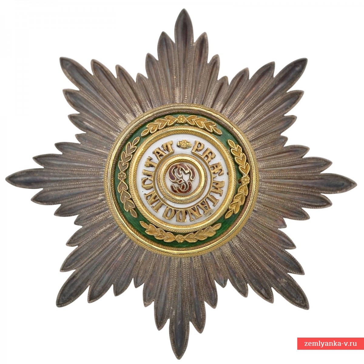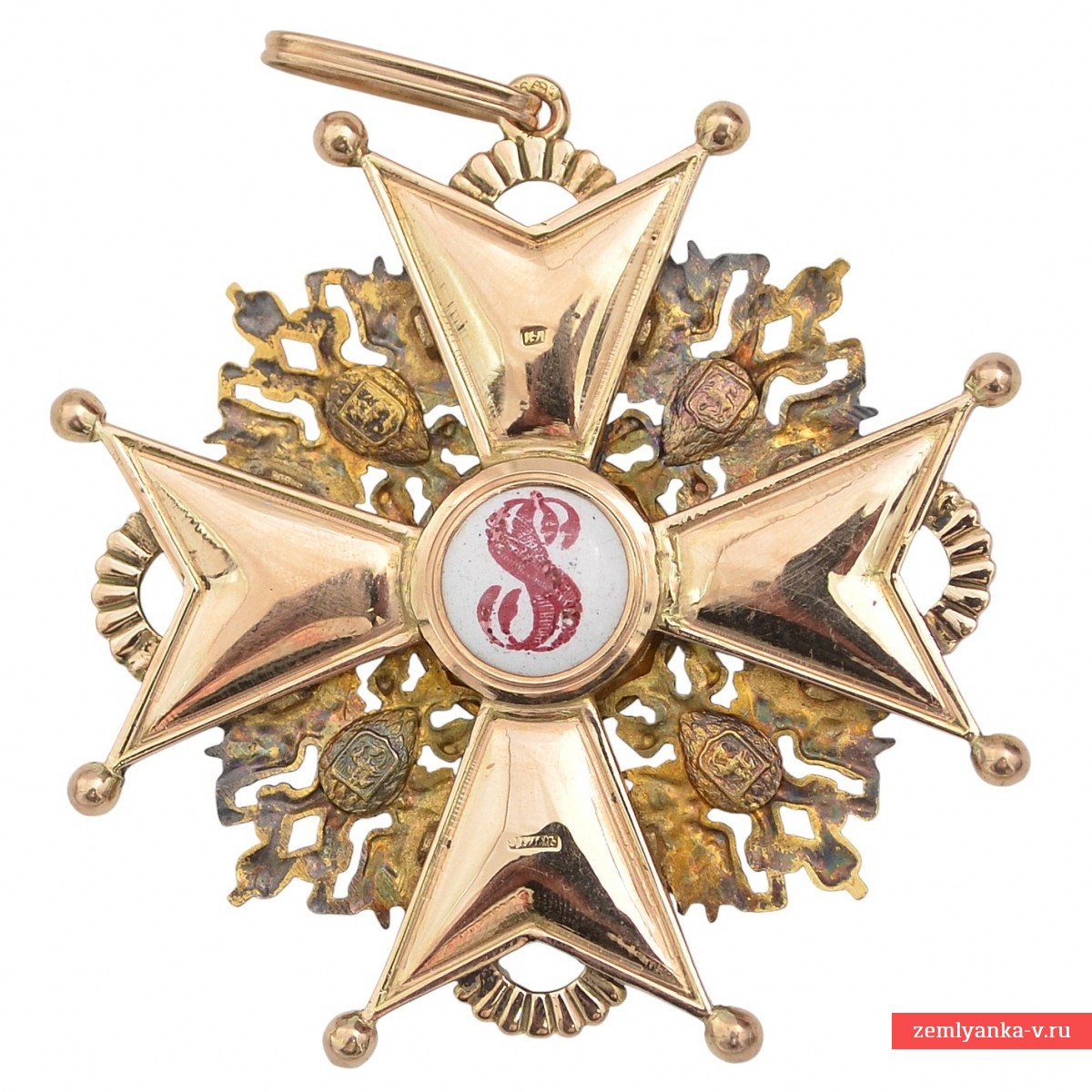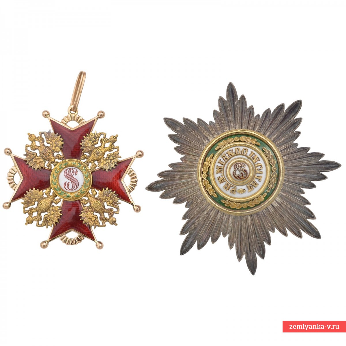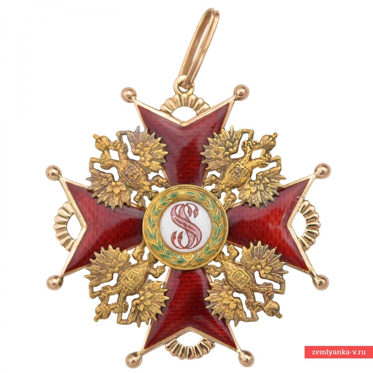 Since 1844, the monogram of the name of St. Stanislaus has been replaced by the black imperial Russian eagle on the badges of the order, which are awarded to persons of non-Christian faith.