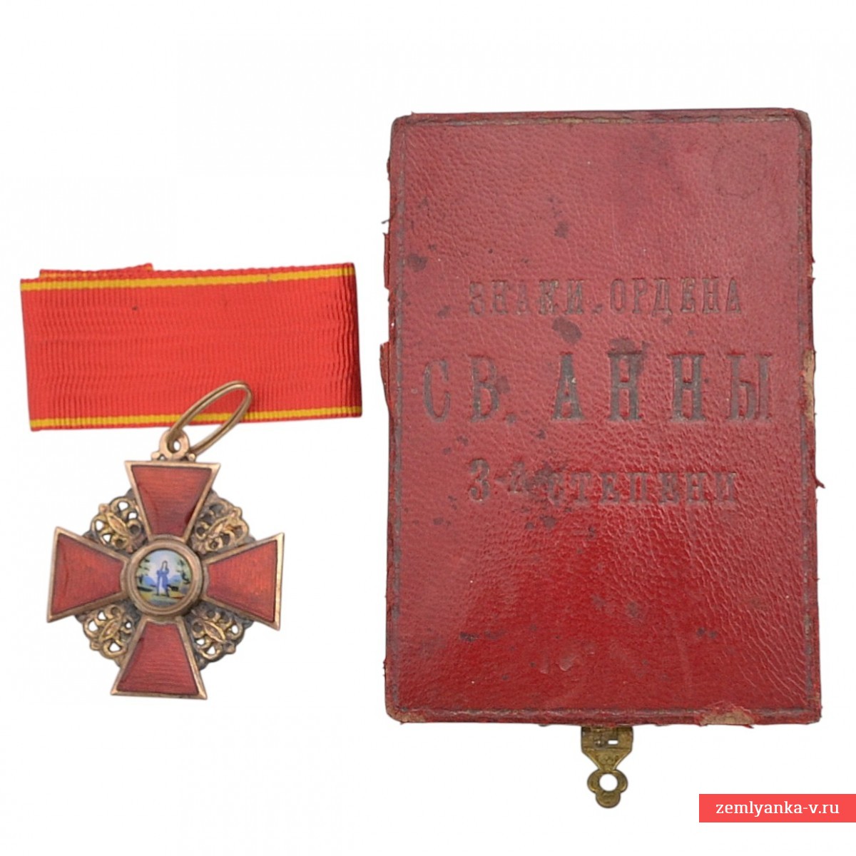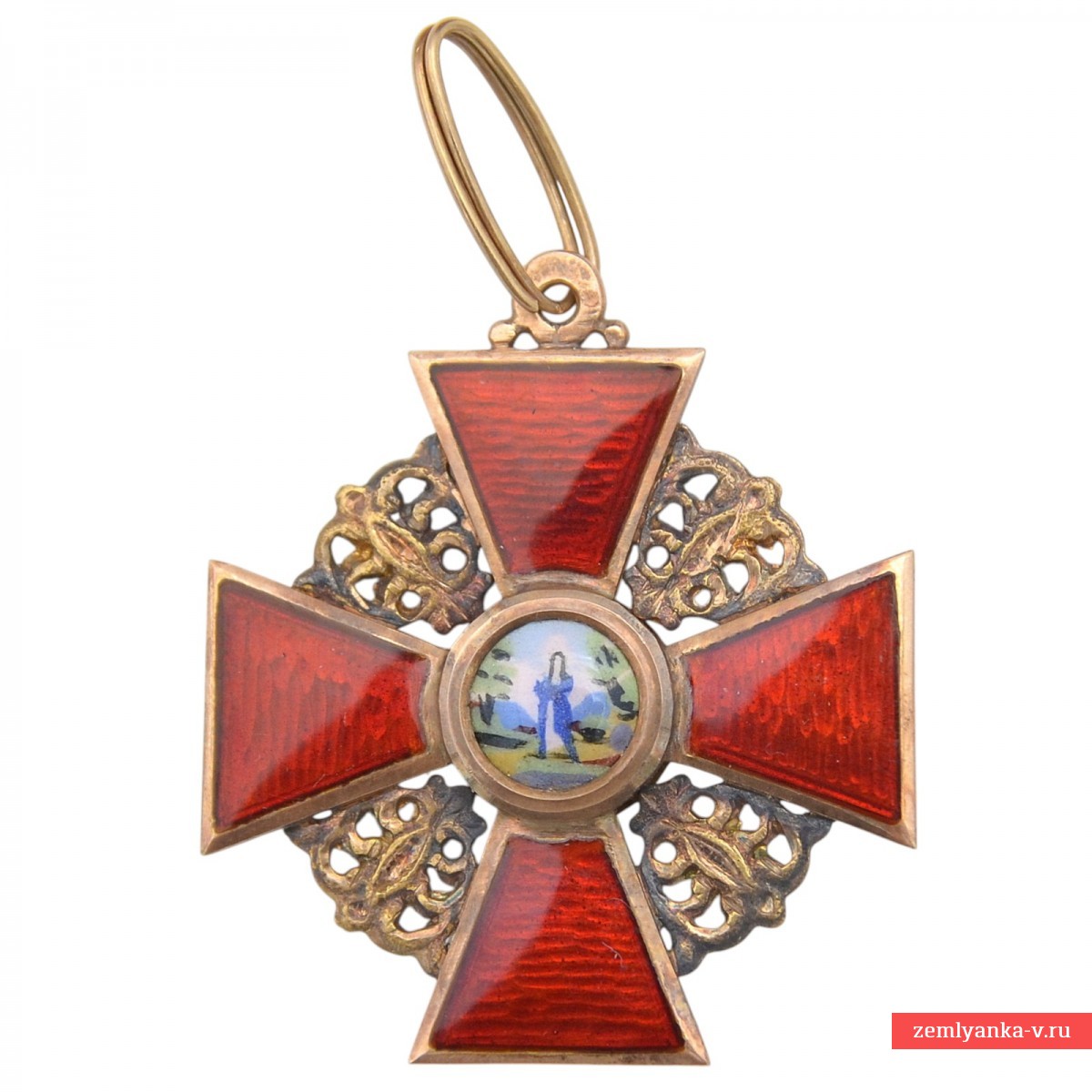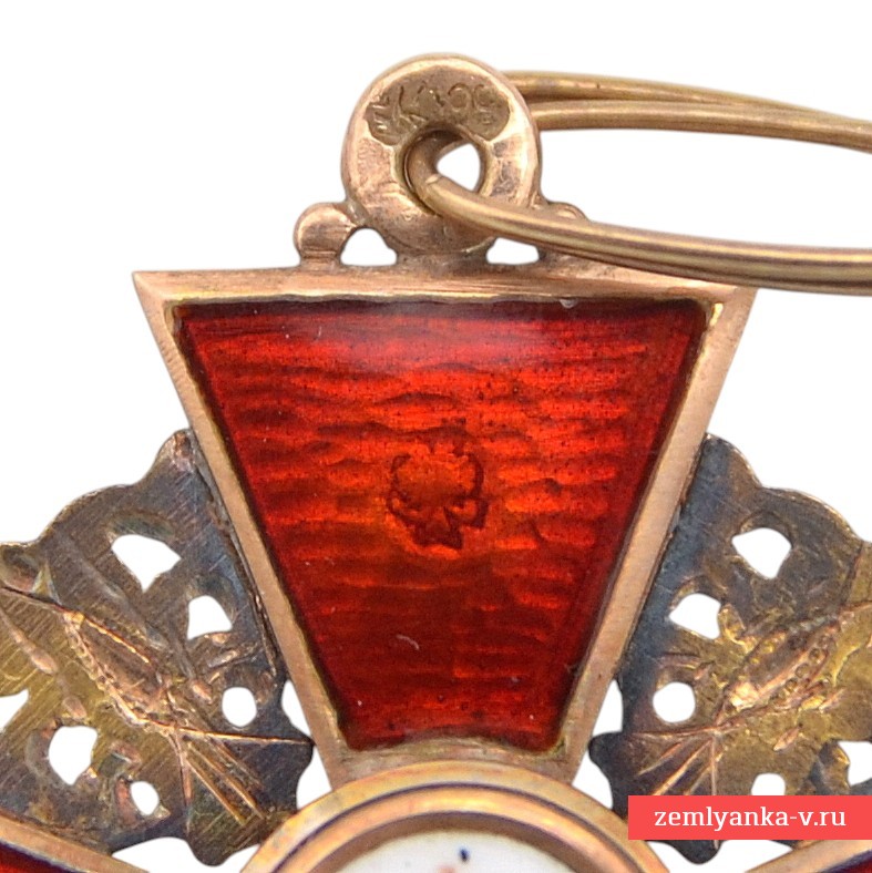 The original order is in excellent collector's condition. Gold, guilloche, enamel. The sign is an equilateral cross with crossed medieval swords on a background of plates with openwork ornaments and an eyelet with an intermediate ring. In the center of the obverse, in a rounded medallion, there is an image of St. Anna with a halo around her head, in the background in the form of two palm trees and two mountains (stylization Of the Josaphat Valley). On the reverse, in the center, in a rounded enamel medallion, there is an image of a monogram consisting of four Latin letters "AFIP" ("ANNA FILIA IMPERATORIS PETRUS" — "ANNA DAUGHTER OF EMPEROR PETER"). The brand on the lower beam is "AK", on the upper one is a Russian double–headed eagle. The stamps on the eyelet are assay 56. The manufacturer, Keibel, was the official supplier of the Chapter House from 1836 to 1905. From 1836 to 1862 (until 1854, together with Heinrich Wilhelm Kemmerer), Johann Wilhelm Keibel (1788-1862) owned it. After I.V. Keibel's death, his son, Julius Keibel (1852-1882), became the supplier, and in 1882-1905 he was I.V. Keibel's grandson, Albert Keibel (1854-1910). The safety is excellent. The original ribbon and case are included. Guarantee of authenticity.