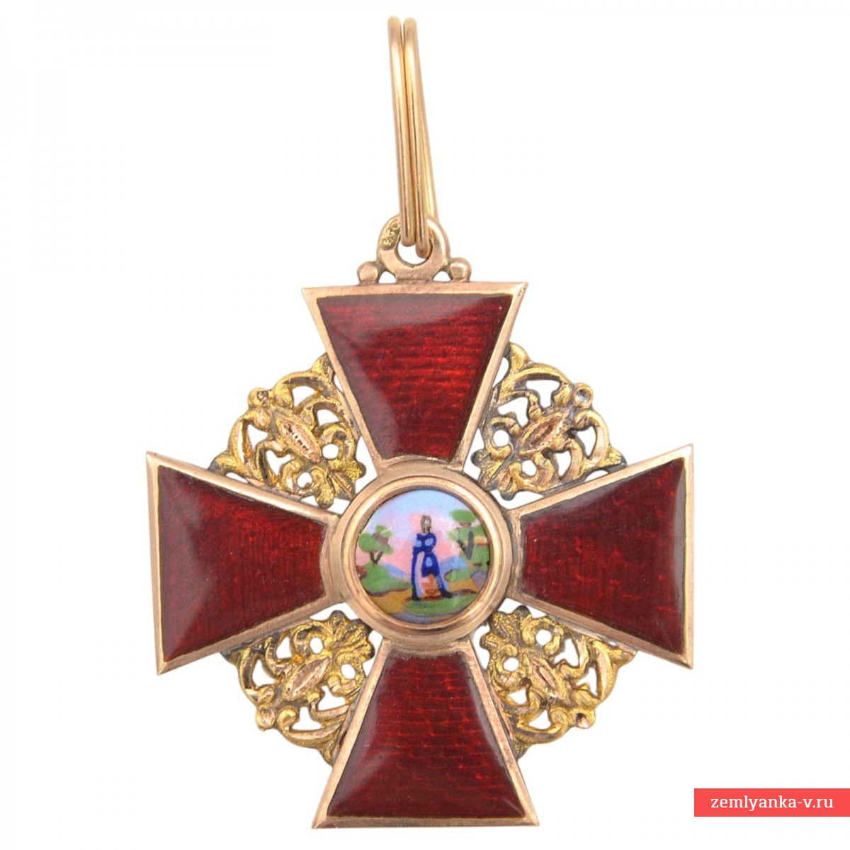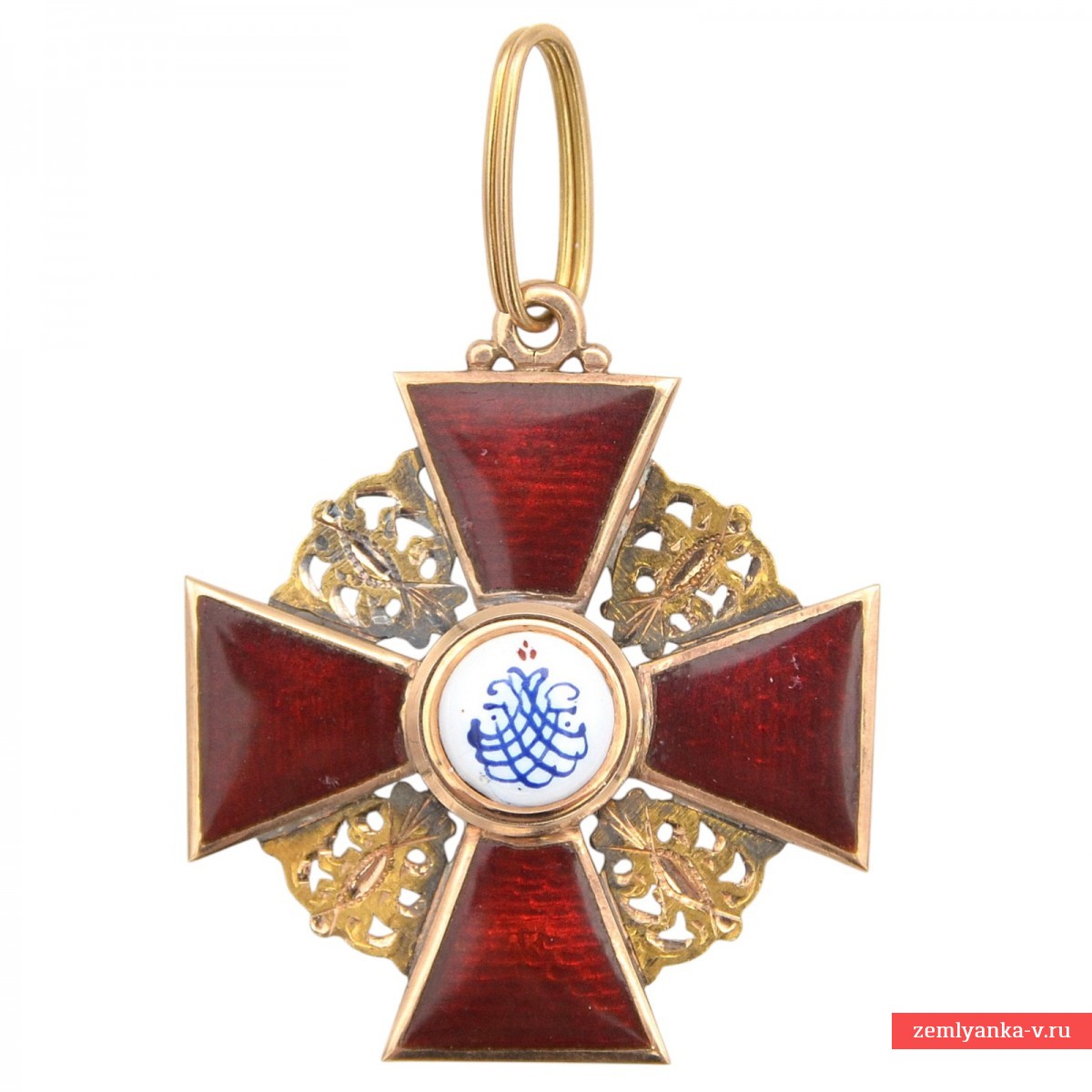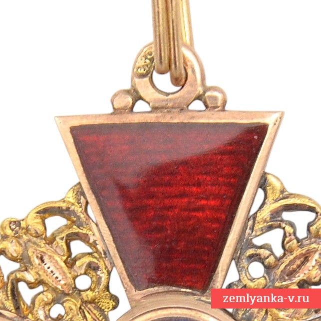 The original order is in excellent collector's condition. Gold, guilloche, enamel. The size is 33*38 mm. The weight is 8.3 grams. The sign is an equilateral cross with crossed medieval swords on the background of plates with openwork ornaments and an eyelet with an intermediate ring. In the center of the obverse, in a rounded medallion, there is an image of St. Anna with a halo around her head, in the background in the form of two palm trees and two mountains (stylization Of the Josaphat Valley). On the reverse, in the center, in a rounded enamel medallion, there is an image of a monogram consisting of four Latin letters "AFIP" ("ANNA FILIA IMPERATORIS PETRUS" — "ANNA DAUGHTER OF EMPEROR PETER"). The brand on the lower beam is "AK", on the upper one is a Russian double–headed eagle. The stamps on the eyelet are assay 56. The manufacturer, Keibel, was the official supplier of the Chapter House from 1836 to 1905. From 1836 to 1862 (until 1854, together with Heinrich Wilhelm Kemmerer), Johann Wilhelm Keibel (1788-1862) owned it. After I.V. Keibel's death, his son, Julius Keibel (1852-1882), became the supplier, and in 1882-1905 he was I.V. Keibel's grandson, Albert Keibel (1854-1910). Guarantee of authenticity.