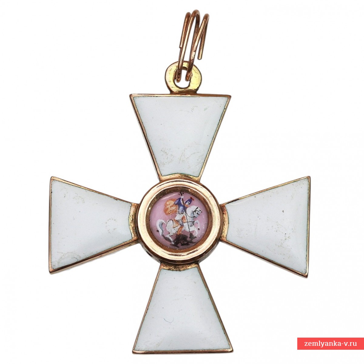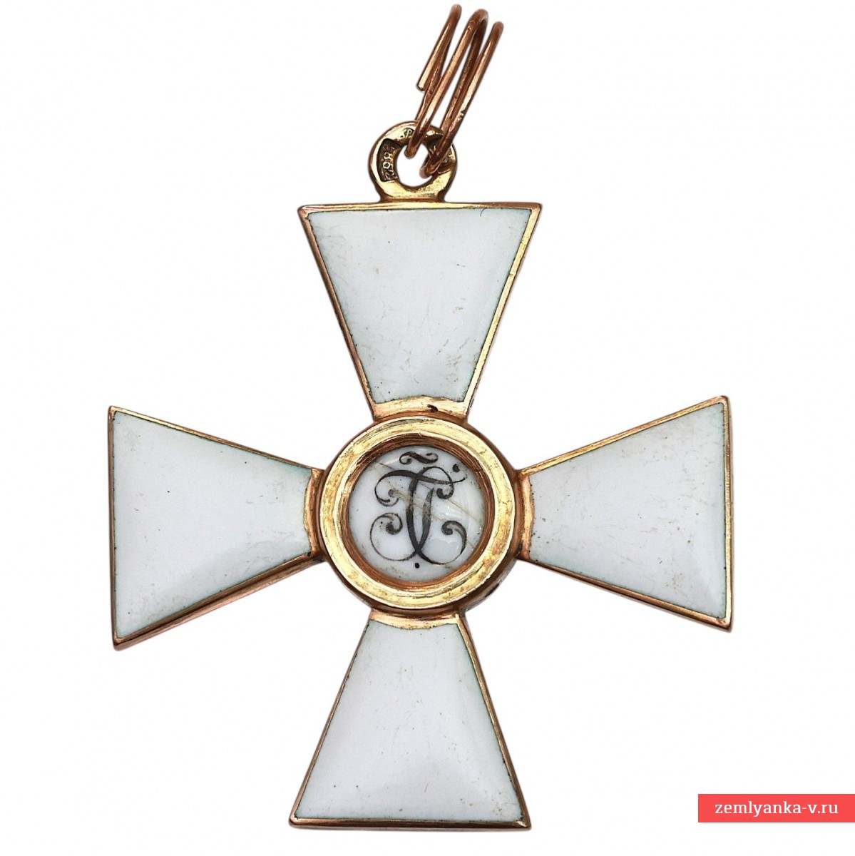 56 gold, enamel, stamping. The sign is an equi-pointed cross with an eye on the upper ray and flaring ends, on the front side of which the monogram "SG" ("Saint George") is placed in the center of the medallion. In the center of the reverse is a round medallion with a relief image of a horseman piercing a snake with a spear (St. George). There is a 56-gold stamp on the ear, dated 1862. Weight 10.63 g. The size is 38*42 mm. The manufacturer, Keibel, was the official supplier of the Chapter House from 1836 to 1905. From 1836 to 1862 (until 1854, together with Heinrich Wilhelm Kemmerer), Johann Wilhelm Keibel (1788-1862) owned it. After I.V. Keibel's death, his son, Julius Keibel (1852-1882), became the supplier, and in 1882-1905 he was I.V. Keibel's grandson, Albert Keibel (1854-1910). Good preservation, threadlike cracks on the medallion. The original industrial link is included. Guarantee of authenticity.