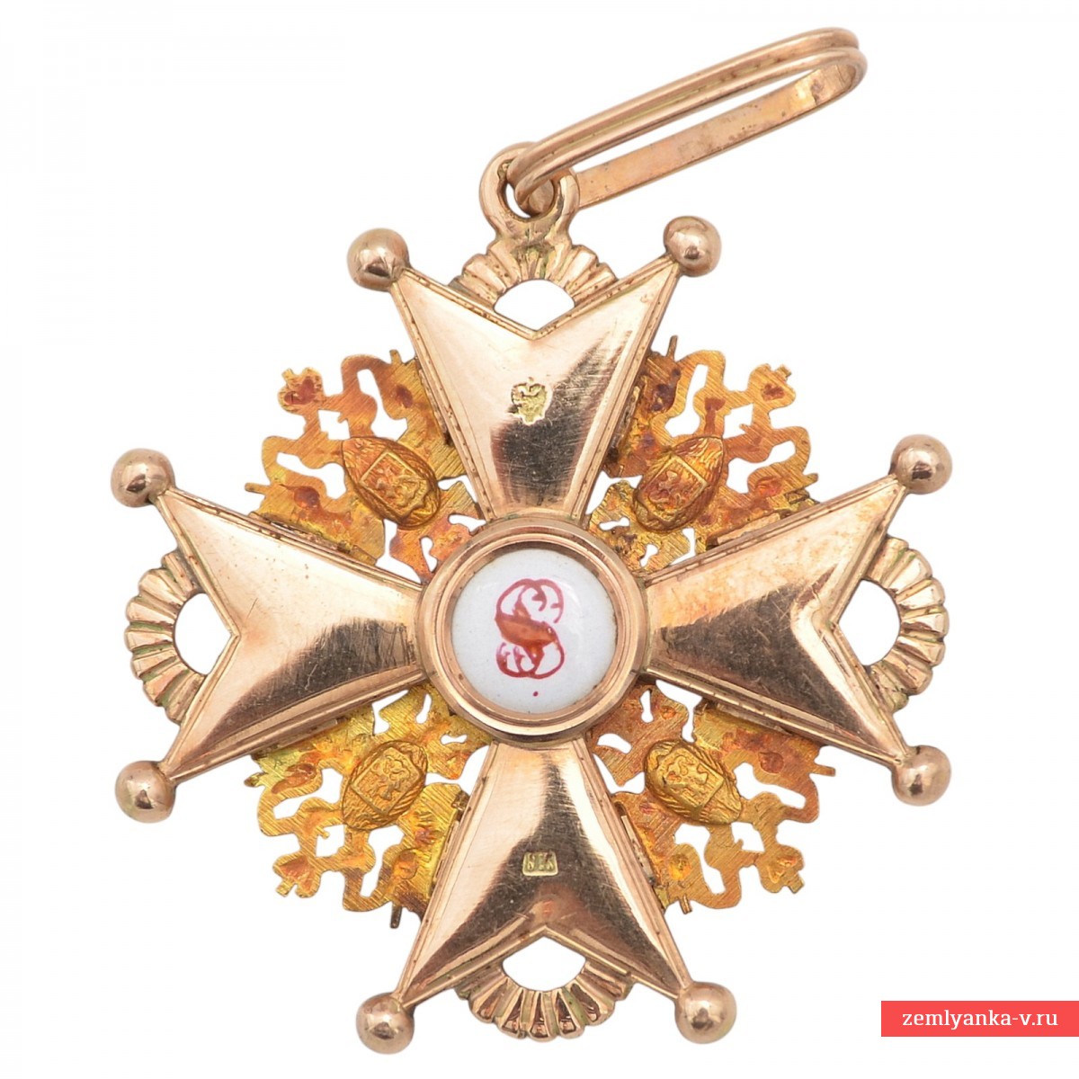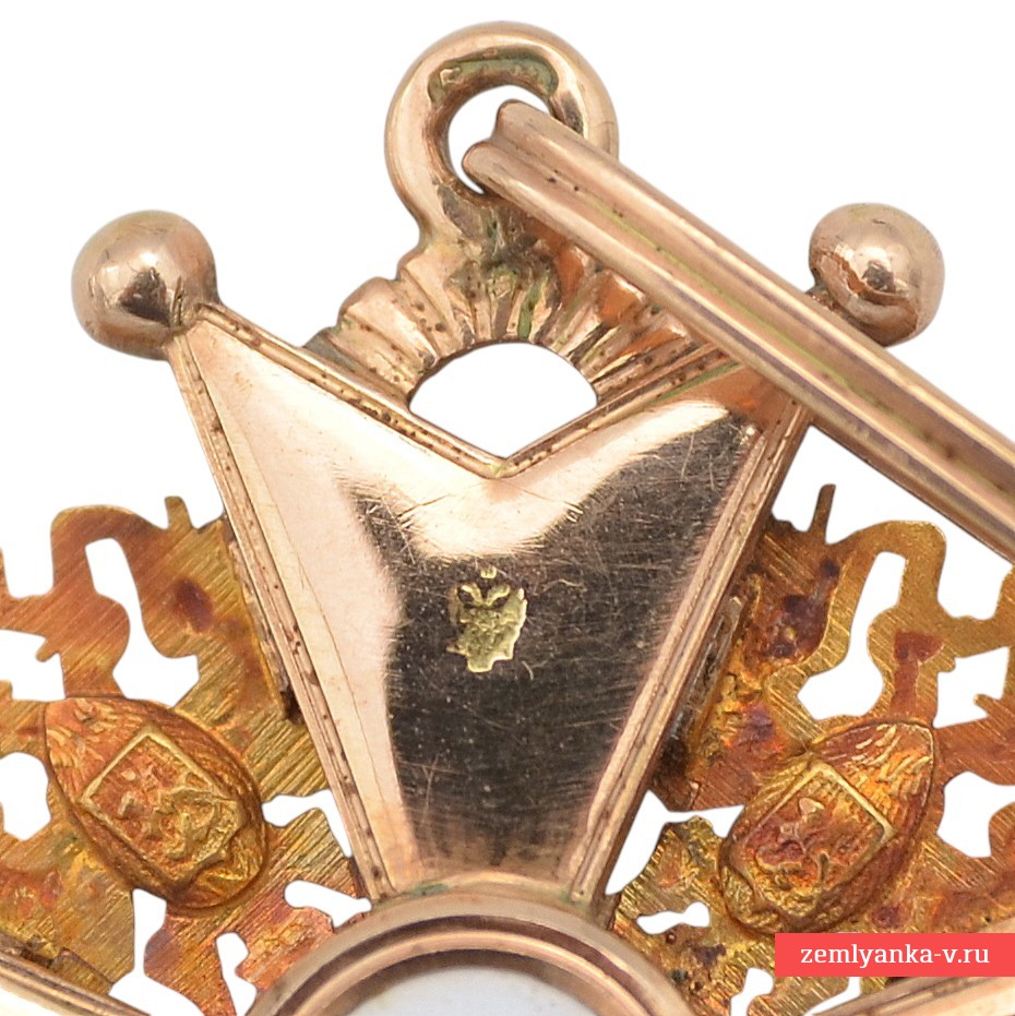 56 gold, enamel, guilloche, stamping. The brand on the lower beam is "AK", on the upper one is a Russian double–headed eagle. The stamps on the eyelet are assay 56. The manufacturer, Keibel, was the official supplier of the Chapter House from 1836 to 1905. From 1836 to 1862 (until 1854, together with Heinrich Wilhelm Kemmerer), Johann Wilhelm Keibel (1788-1862) owned it. After I.V. Keibel's death, his son, Julius Keibel (1852-1882), became the supplier, and in 1882-1905 he was I.V. Keibel's grandson, Albert Keibel (1854-1910). The safety is excellent. Guarantee of authenticity.