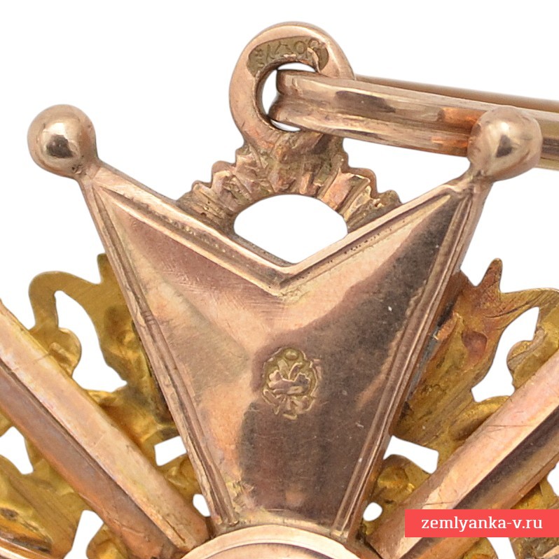 An original and very rare order. 56 gold, enamel, guilloche, stamping. The weight is 25.6 grams. The dimensions are 48*50 mm. The brand on the lower beam is "AK", on the upper one is a Russian double–headed eagle. The stamps on the eyelet are assay 56. The manufacturer, Keibel, was the official supplier of the Chapter House from 1836 to 1905. From 1836 to 1862 (until 1854, together with Heinrich Wilhelm Kemmerer), Johann Wilhelm Keibel (1788-1862) owned it. After I.V. Keibel's death, his son, Julius Keibel (1852-1882), became the supplier, and in 1882-1905 he was I.V. Keibel's grandson, Albert Keibel (1854-1910). The safety is excellent. Guarantee of authenticity.