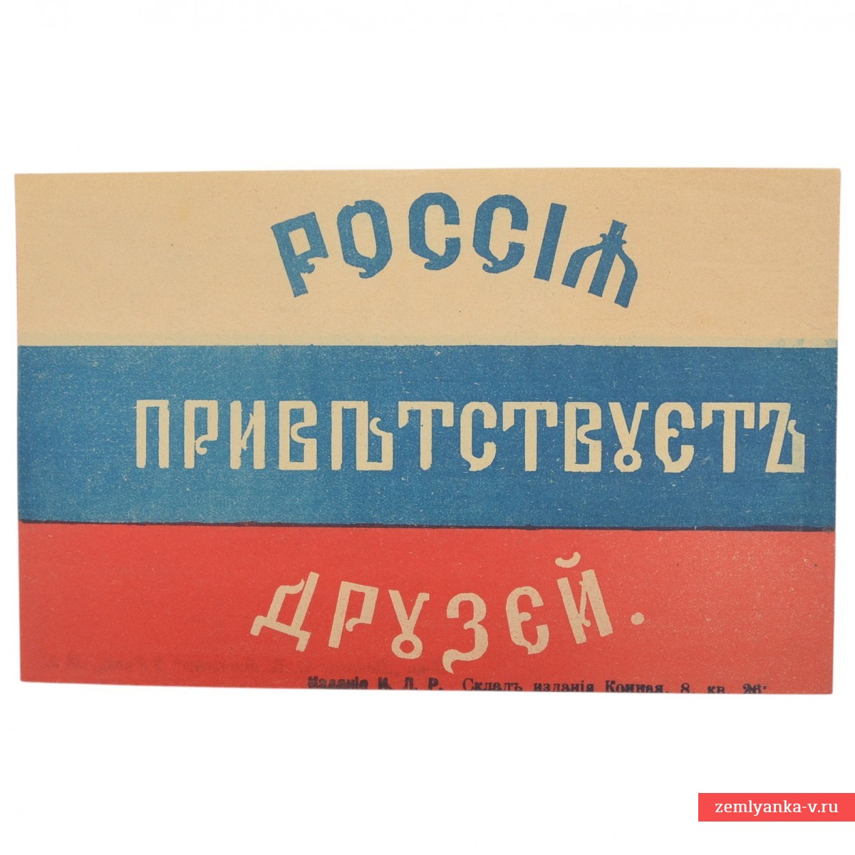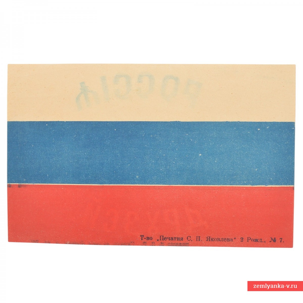 The original flag, garlands of which decorated the streets of St. Petersburg during the visit of French President Poincare to Russia in 1914. Printing with paints. This visit was a key diplomatic event on the eve of the First World War, and confirmed the strength of the Franco-Russian alliance (Entente) in response to the worsening relations with Germany and Austria-Hungary. The visit included talks with Nicholas II in Peterhof. The size is 125*195mm. Printed by the partnership "Printing house S. P. Yakovleva." Guarantee of authenticity.