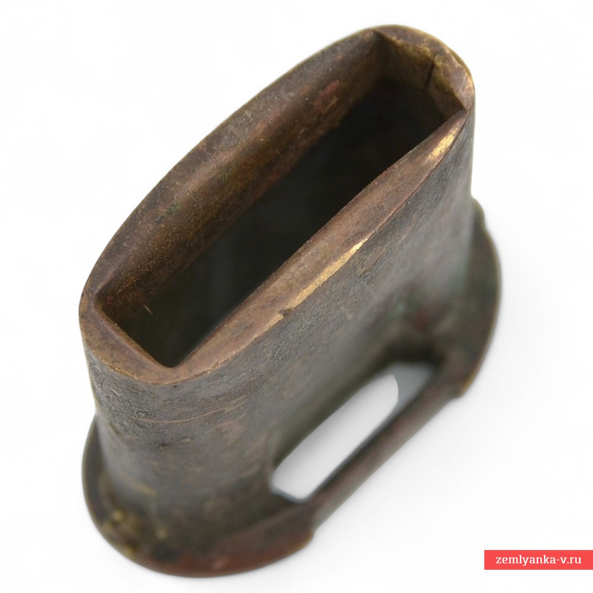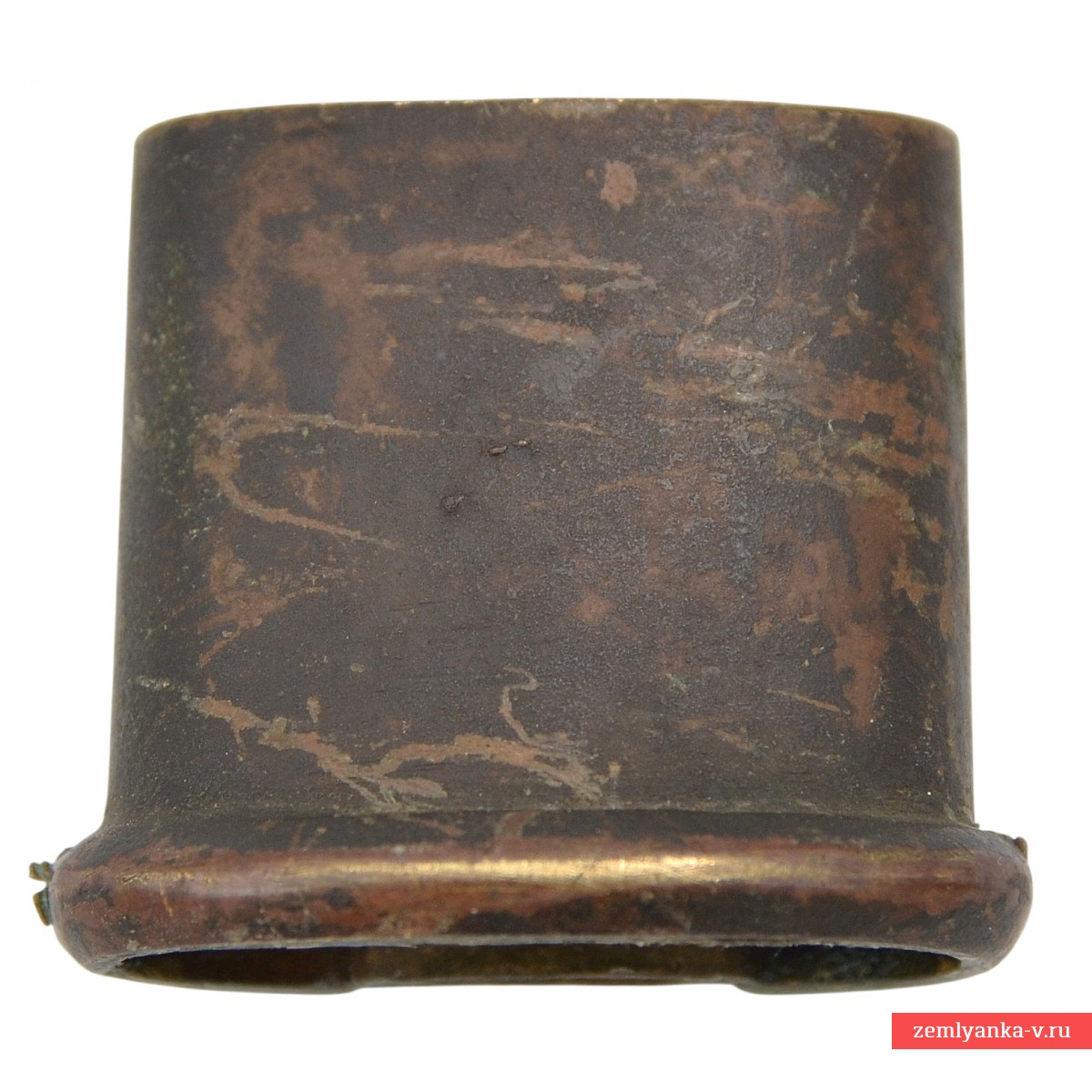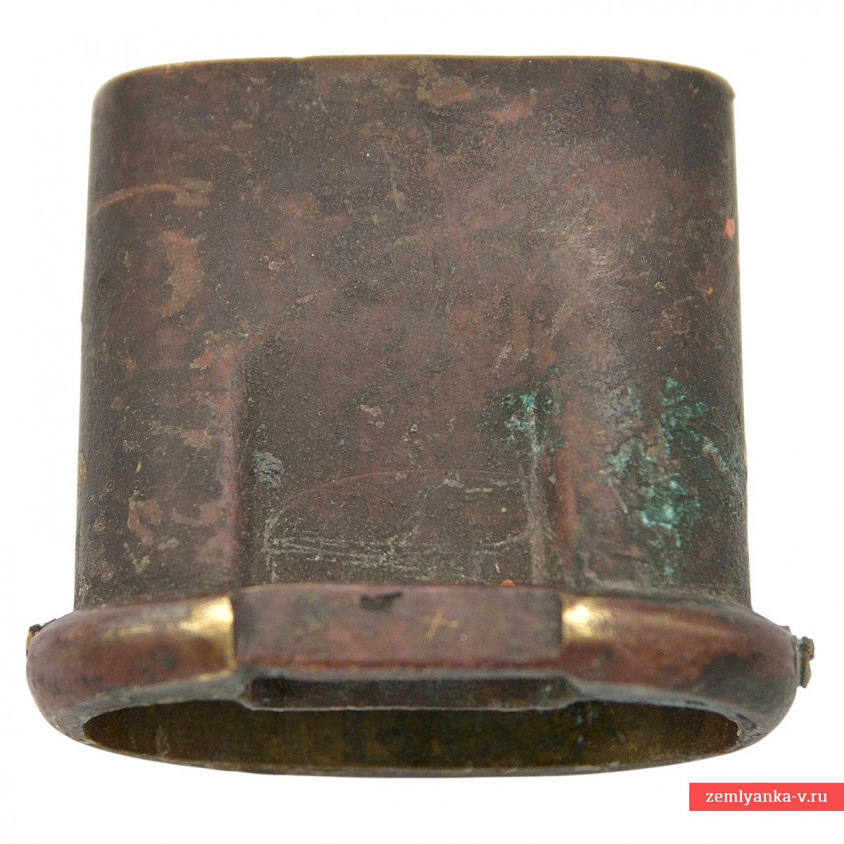 Brass, stamping, gilding. The original mouthpiece from the officer's saber is in excellent collector's condition. Nice old patina, remnants of gilding. Guarantee of authenticity.