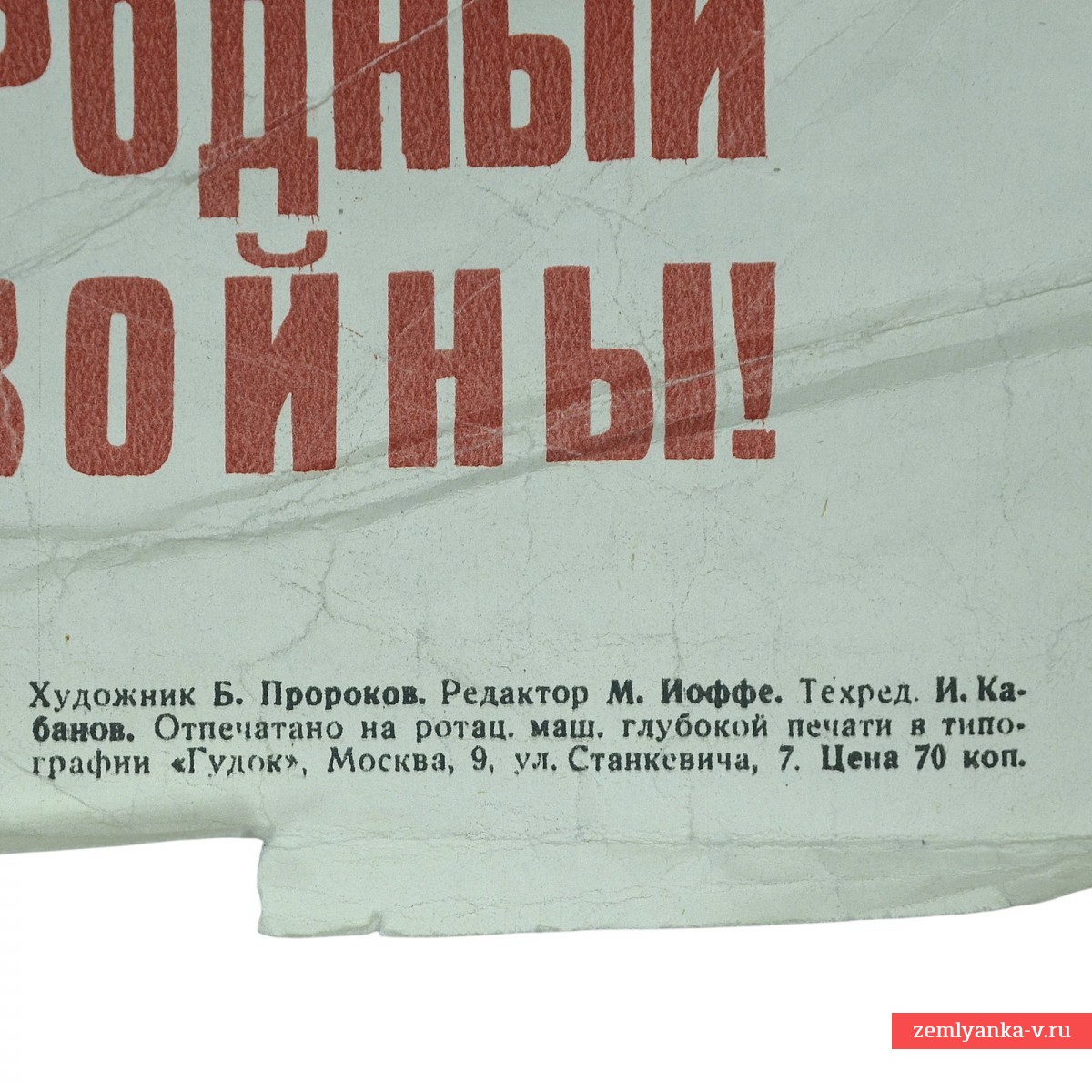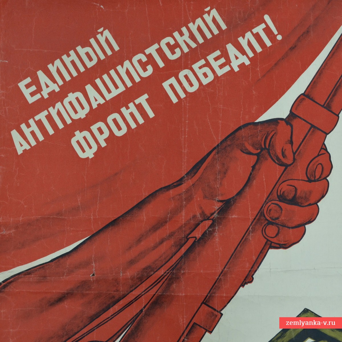 The poster was created on the eve of World War II, against the backdrop of the growing fascist threat in Europe, including the Spanish Civil War (1936-1939). He calls for the unification of the working people of the whole world against fascism and war. The main text reads: "THE UNITED ANTI-FASCIST FRONT WILL WIN!". At the bottom there is a call: "WORKERS, WORKING WOMEN, PEASANTS AND WORKERS OF ALL COUNTRIES! EXPAND AND STRENGTHEN THE POPULAR FRONT OF THE STRUGGLE AGAINST FASCISM AND WAR!" Moscow: OGIZ-IZOGIZ, 1938. Author Boris Ivanovich Prophokov (1911-1972), Soviet painter, graphic artist and caricaturist. It is made in the style of caricature, which was typical of the works of the Prophet of that period. Size 90*60 cm Edition 100,000 copies. Damage, contamination, creases, requires restoration. Guarantee of authenticity.