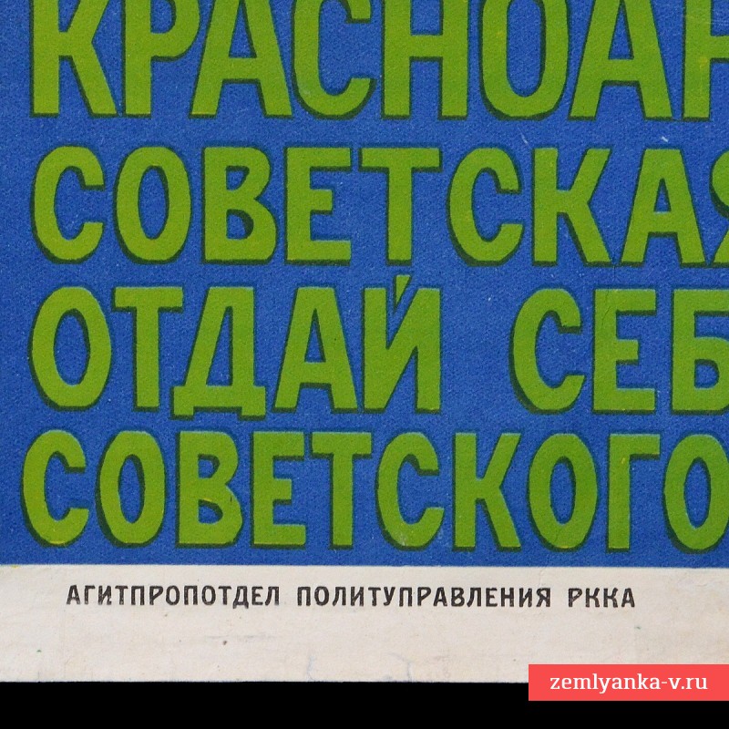 An original and extremely rare large-format poster in very good collector's condition. Propaganda department of the Red Army. The circulation is 10000. Size 1075*720 mm. Guarantee of authenticity.