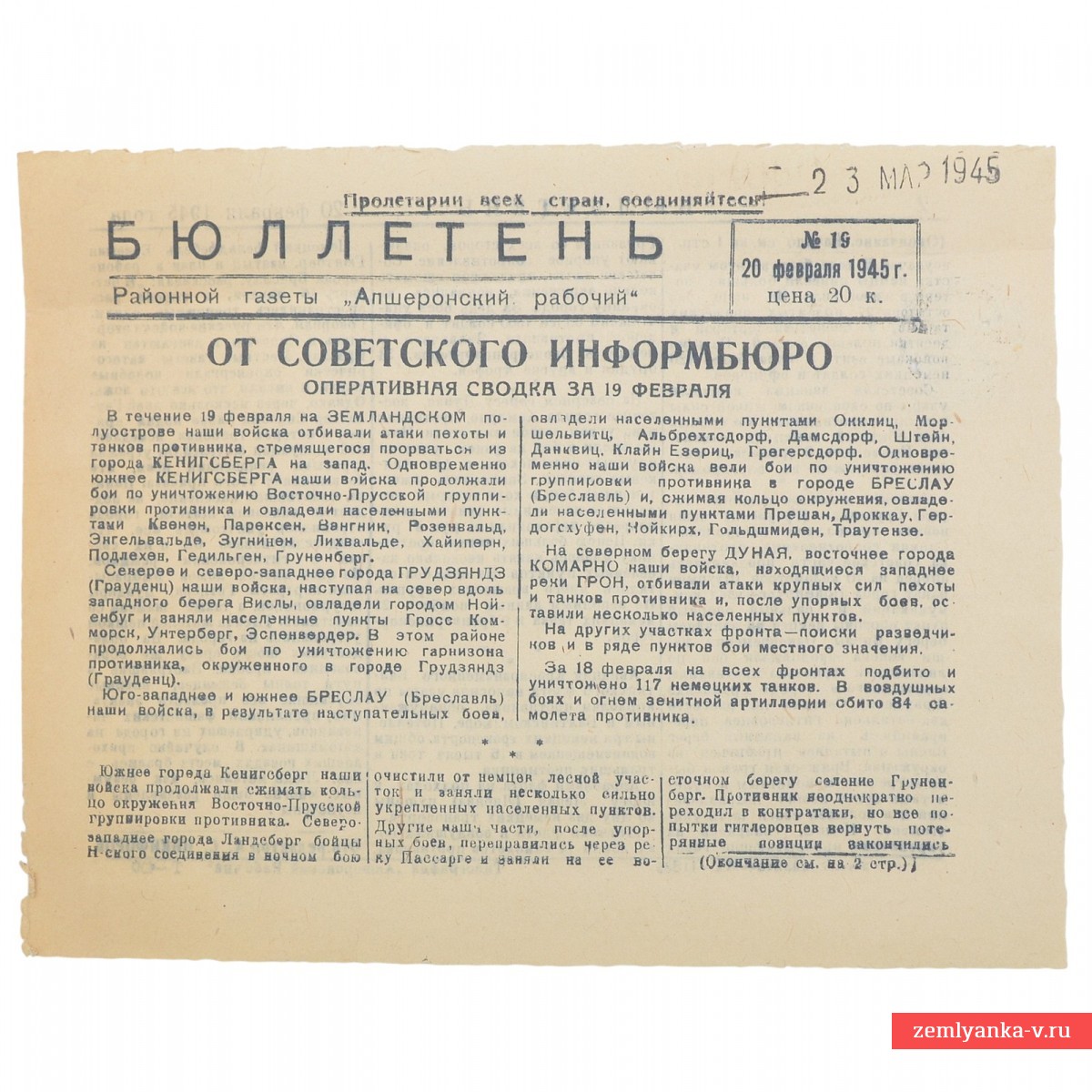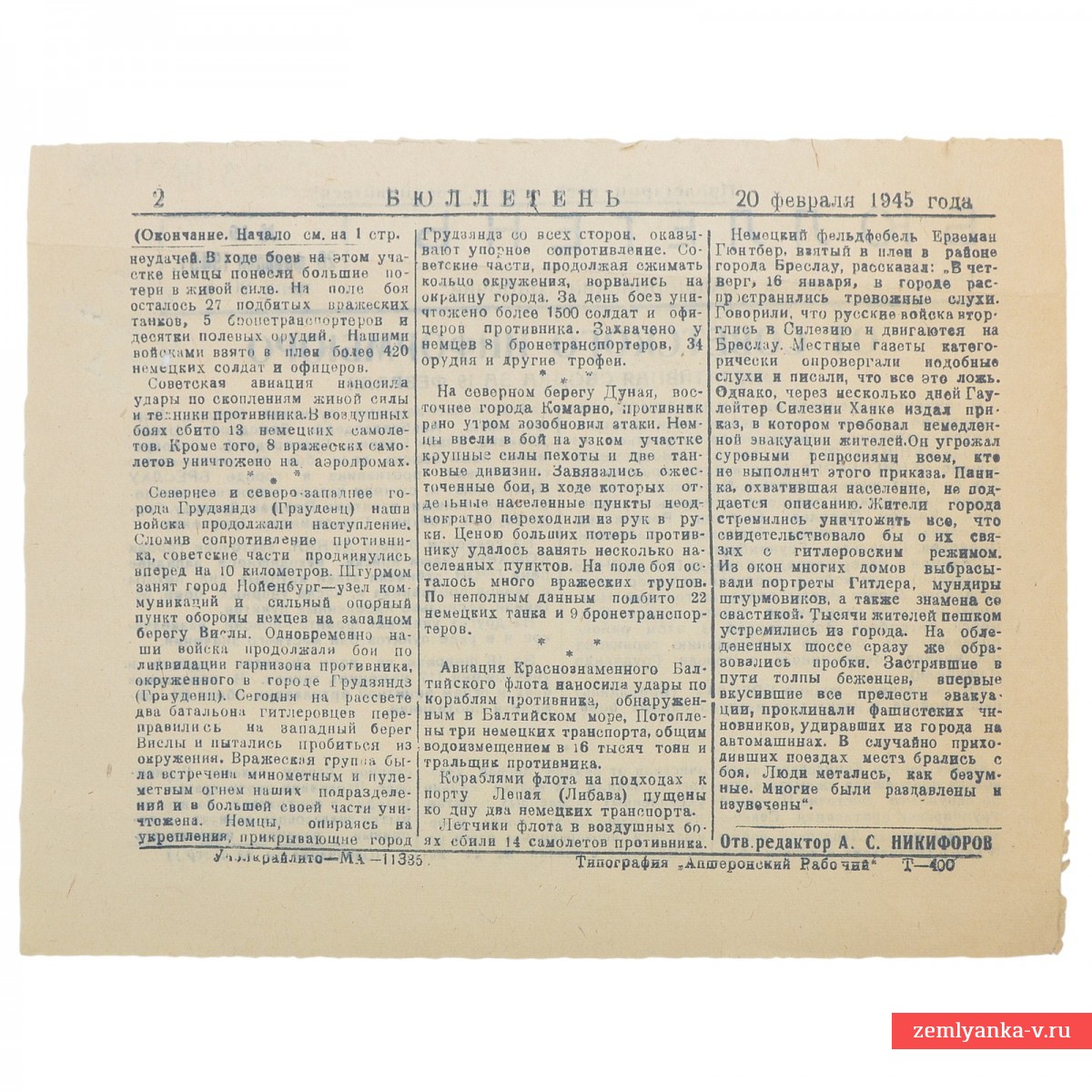In the context of wartime newspapers, "bulletins" were small, promptly issued information leaflets or special issues that complemented the mainstream press. Although the term "bulletin" is not widely used, it describes the format of news releases that were produced in addition to major newspapers during the Great Patriotic War. The bulletins could contain brief but important reports on the course of the fighting in order to inform soldiers and the civilian population in conditions of limited access to the main press. They were published in addition to major newspapers, which were published in large numbers and covered various aspects of the country's life during the war. In addition to the news, the bulletins could be used to distribute propaganda materials, call for patriotism, and mobilize forces at the front and in the rear. During the Great Patriotic War, many different publications were produced, including partisan newspapers, front-line and army newspapers, as well as leaflets distributed behind enemy lines, and all of them could have their own "bulletins".