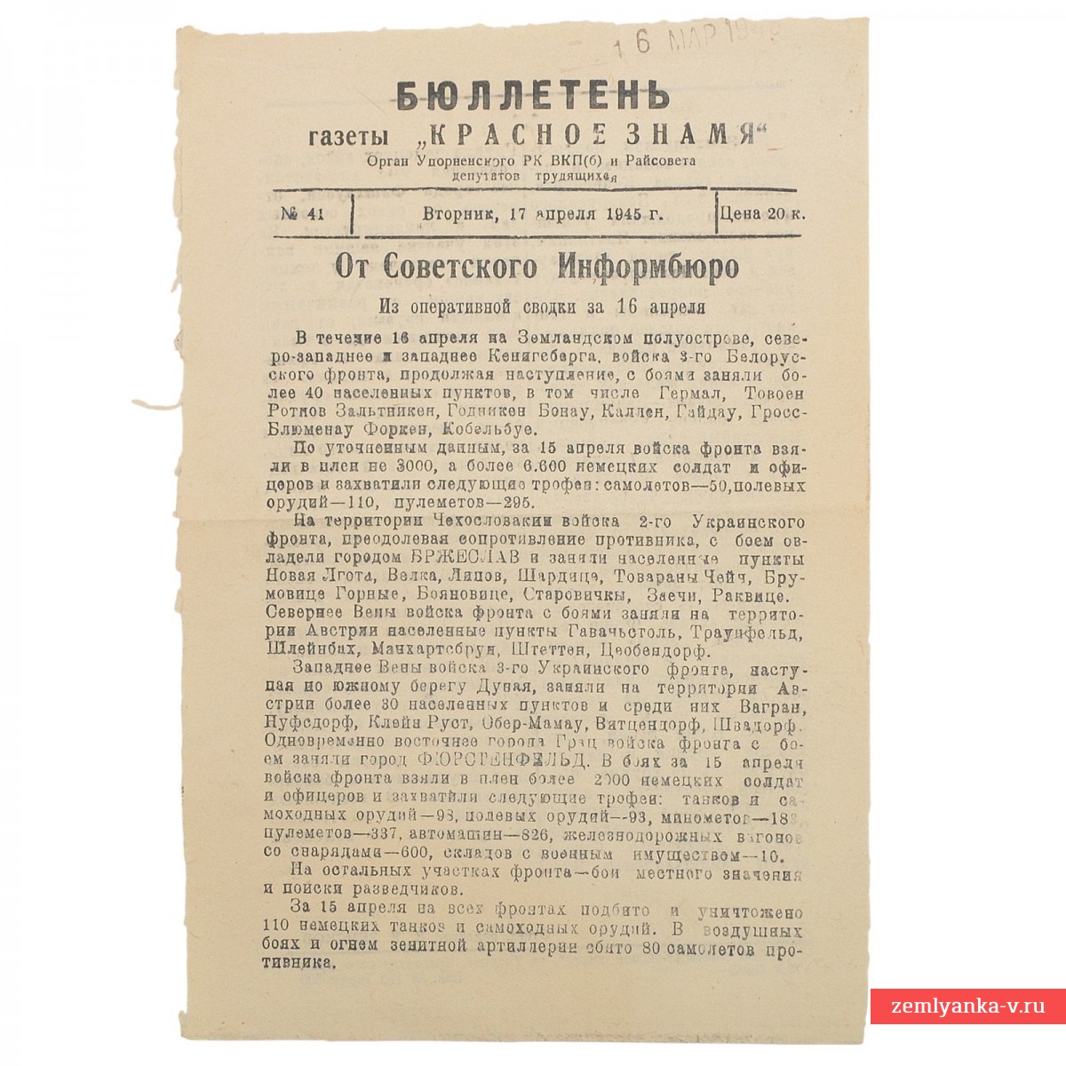 In the context of wartime newspapers, "bulletins" were small, promptly issued information leaflets or special issues that complemented the mainstream press. Although the term "bulletin" is not widely used, it describes the format of news releases that were produced in addition to major newspapers during the Great Patriotic War. The bulletins could contain brief but important reports on the course of the fighting in order to inform soldiers and the civilian population in conditions of limited access to the main press. They were published in addition to major newspapers, which were published in large numbers and covered various aspects of the country's life during the war. In addition to the news, the bulletins could be used to distribute propaganda materials, call for patriotism, and mobilize forces at the front and in the rear. During the Great Patriotic War, many different publications were produced, including partisan newspapers, front-line and army newspapers, as well as leaflets distributed behind enemy lines, and all of them could have their own "bulletins".