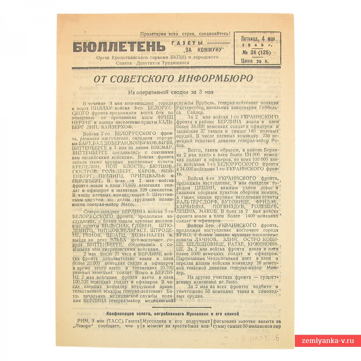In the context of wartime newspapers, "bulletins" were small, promptly issued information leaflets or special issues that complemented the mainstream press. Although the term "bulletin" is not widely used, it describes the format of news releases that were produced in addition to major newspapers during the Great Patriotic War. The bulletins could contain brief but important reports on the course of the fighting in order to inform soldiers and the civilian population in conditions of limited access to the main press. They were published in addition to major newspapers, which were published in large numbers and covered various aspects of the country's life during the war. In addition to the news, the bulletins could be used to distribute propaganda materials, call for patriotism, and mobilize forces at the front and in the rear. During the Great Patriotic War, many different publications were produced, including partisan newspapers, front-line and army newspapers, as well as leaflets distributed behind enemy lines, and all of them could have their own "bulletins".
