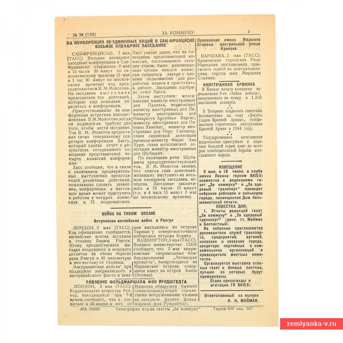 An original and quite rare newsletter in very good collector's condition. The size is 192*277 mm. The volume is 2 lanes. The edition is 800 copies. Guarantee of authenticity.