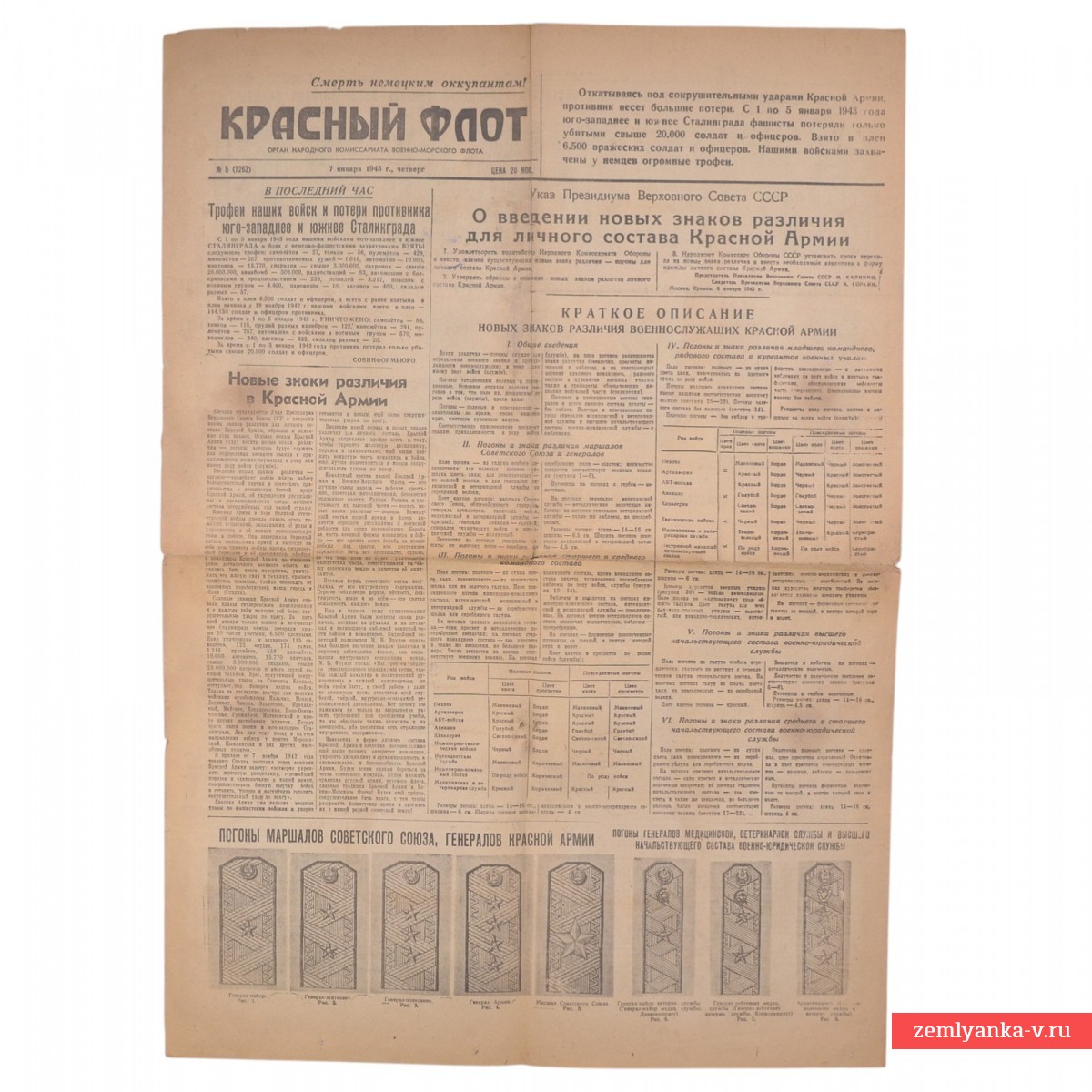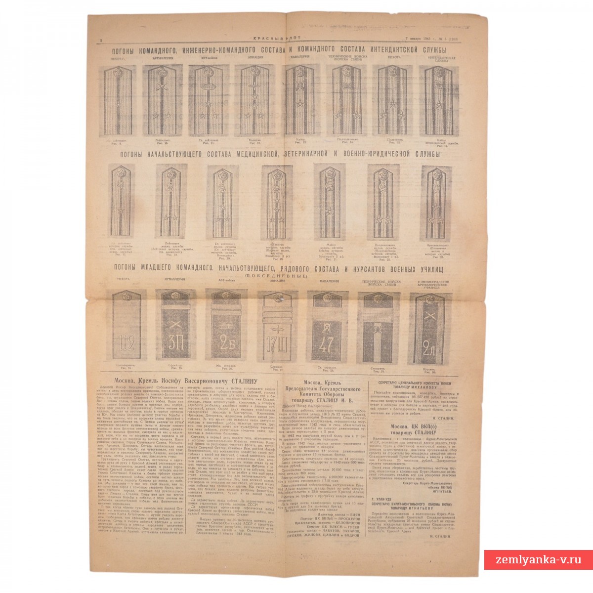 A very rare genuine newspaper in good collector's condition, tears, minor losses. The size is 60x41 cm. The newspaper was published in the midst of the Battle of Stalingrad. The Sovinformburo's summary "In the last Hour" is published on the front page, which lists the colossal trophies and losses of the enemy in the Stalingrad area for the period from January 1 to January 5, 1943. Also printed in the issue is one of the most important decrees of the time — "On the introduction of new insignia for the personnel of the Red Army." It was by this decree that shoulder straps, which had previously been considered a "royal" relic, were returned to the Soviet armed forces. Guarantee of authenticity.