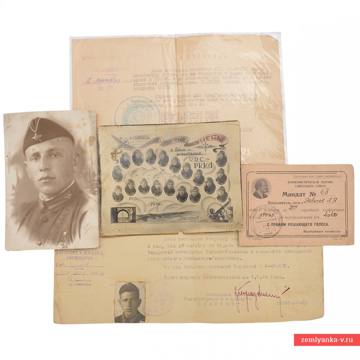 The original small archive is in good condition. It includes a graduation photo from 1939, a portrait photo of a cadet, as well as a number of references. Guarantee of authenticity for all elements of the lot.