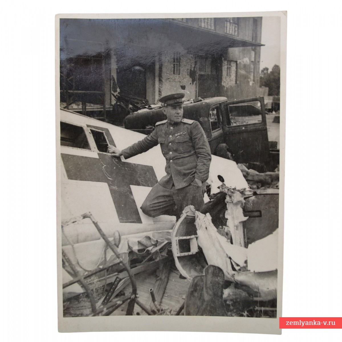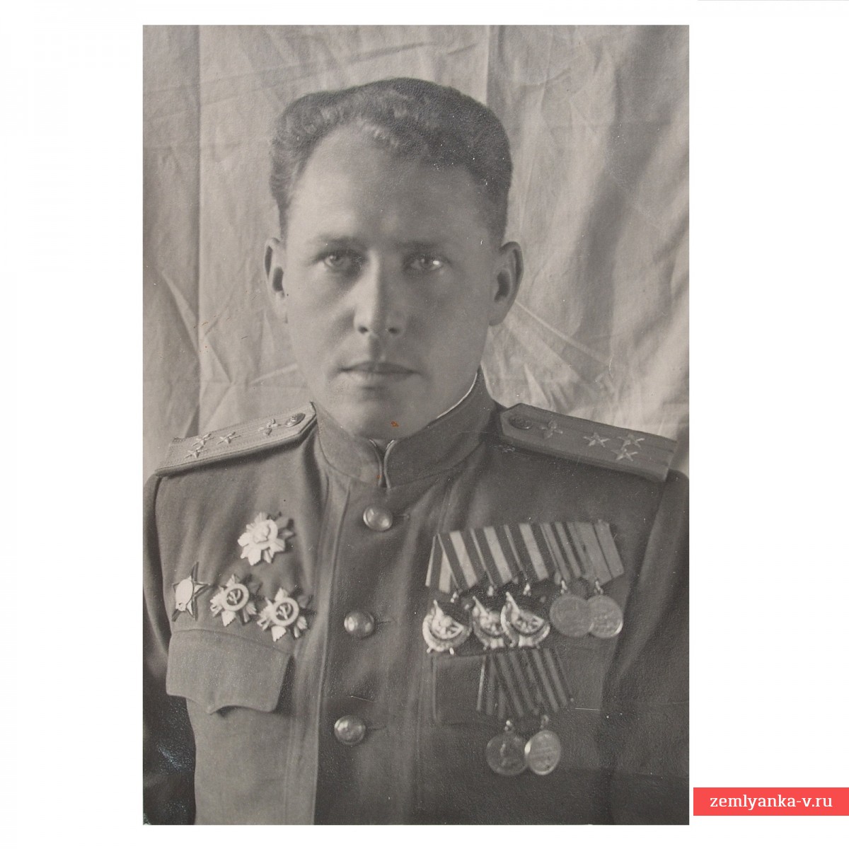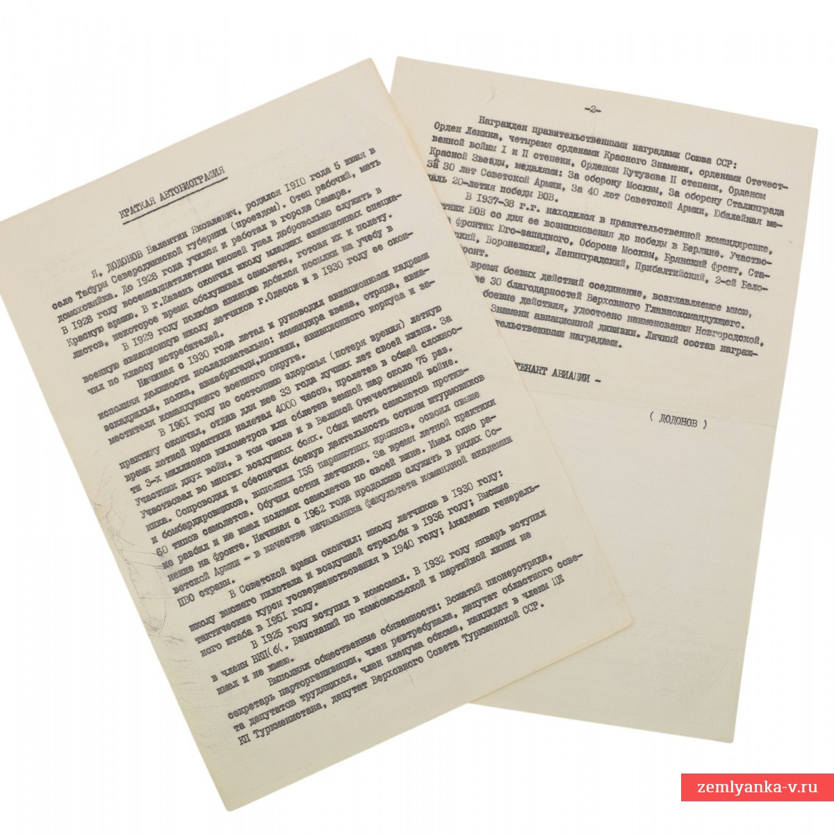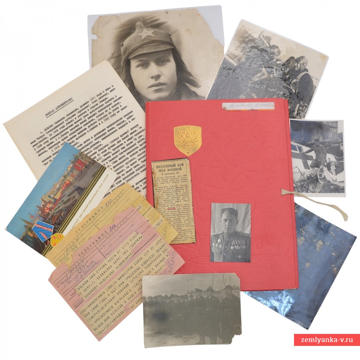 An original small archive acquired from the general's family. It includes an autobiography on 2 sheets, several photos (2 photos are laminated, 2 are modern prints), a folder from a personal file, congratulatory telegrams and a newspaper clipping describing the episode of the battle. Guarantee of authenticity.