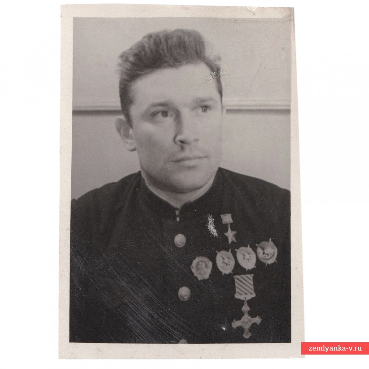 The original wartime photo is in very good condition. The size is 50*73 mm. Apparently, the picture was taken in March 1942, when four North Sea pilots (among them B. F. Safonov) were awarded the Distinguished Flying Cross by the head of the British mission, Lieutenant General MacFarlane, for their cooperation in Operation Benedict to equip the Soviet Air Force with British aircraft. Guarantee of authenticity.