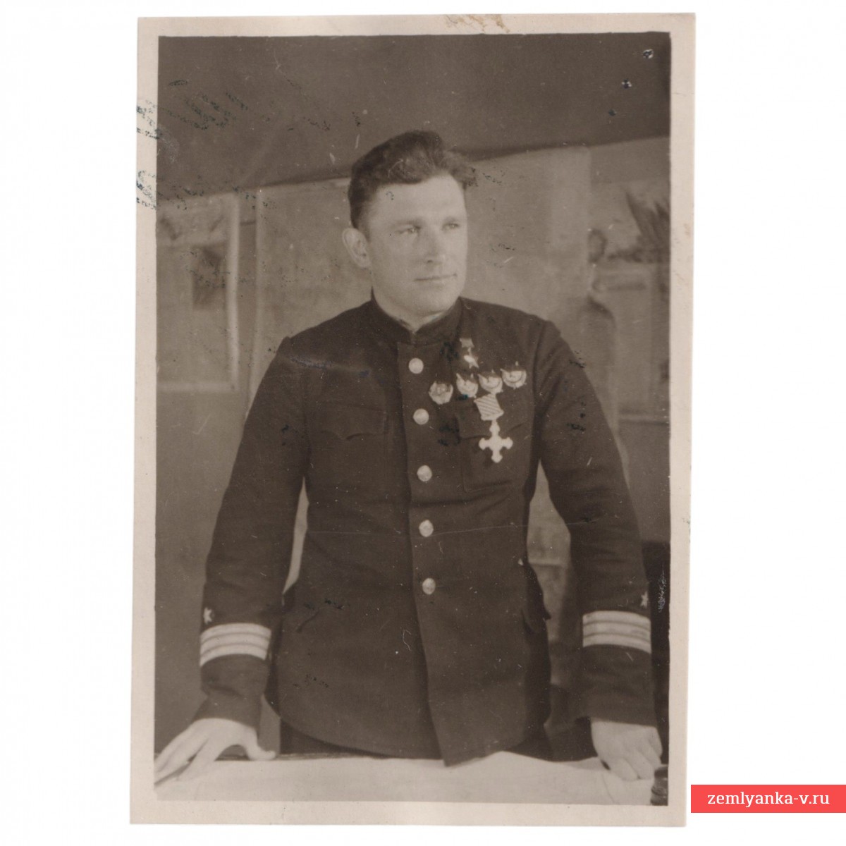 The original wartime photo is in very good condition. The size is 50*73 mm. Apparently, the picture was taken in March 1942, when four North Sea pilots (among them B. F. Safonov) were awarded the Distinguished Flying Cross by the head of the British mission, Lieutenant General MacFarlane, for their cooperation in Operation Benedict to equip the Soviet Air Force with British aircraft. Guarantee of authenticity.