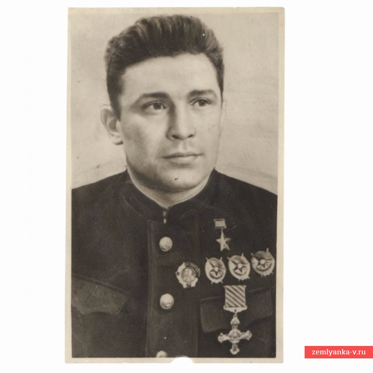 The original wartime photo is in very good condition. The size is 47*77 mm. Apparently, the picture was taken in March 1942, when four North Sea pilots (among them B. F. Safonov) were awarded the Distinguished Flying Cross by the head of the British mission, Lieutenant General MacFarlane, for their cooperation in Operation Benedict to equip the Soviet Air Force with British aircraft. Guarantee of authenticity.