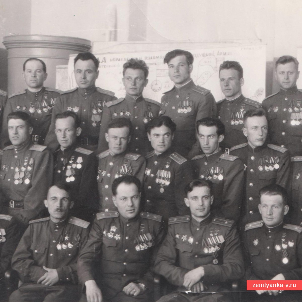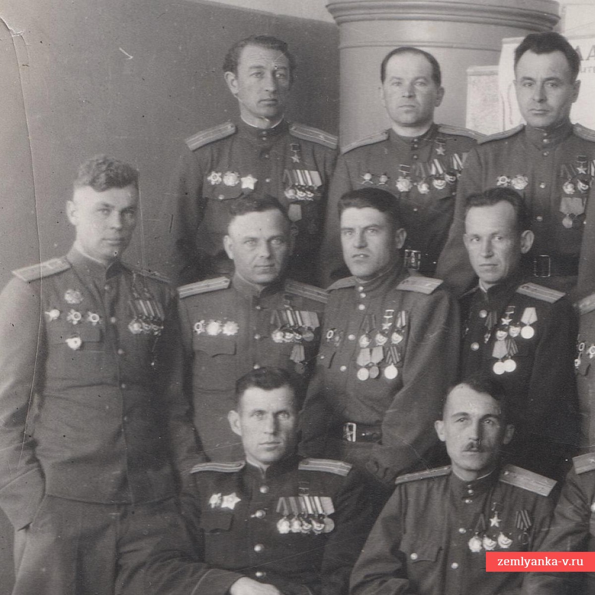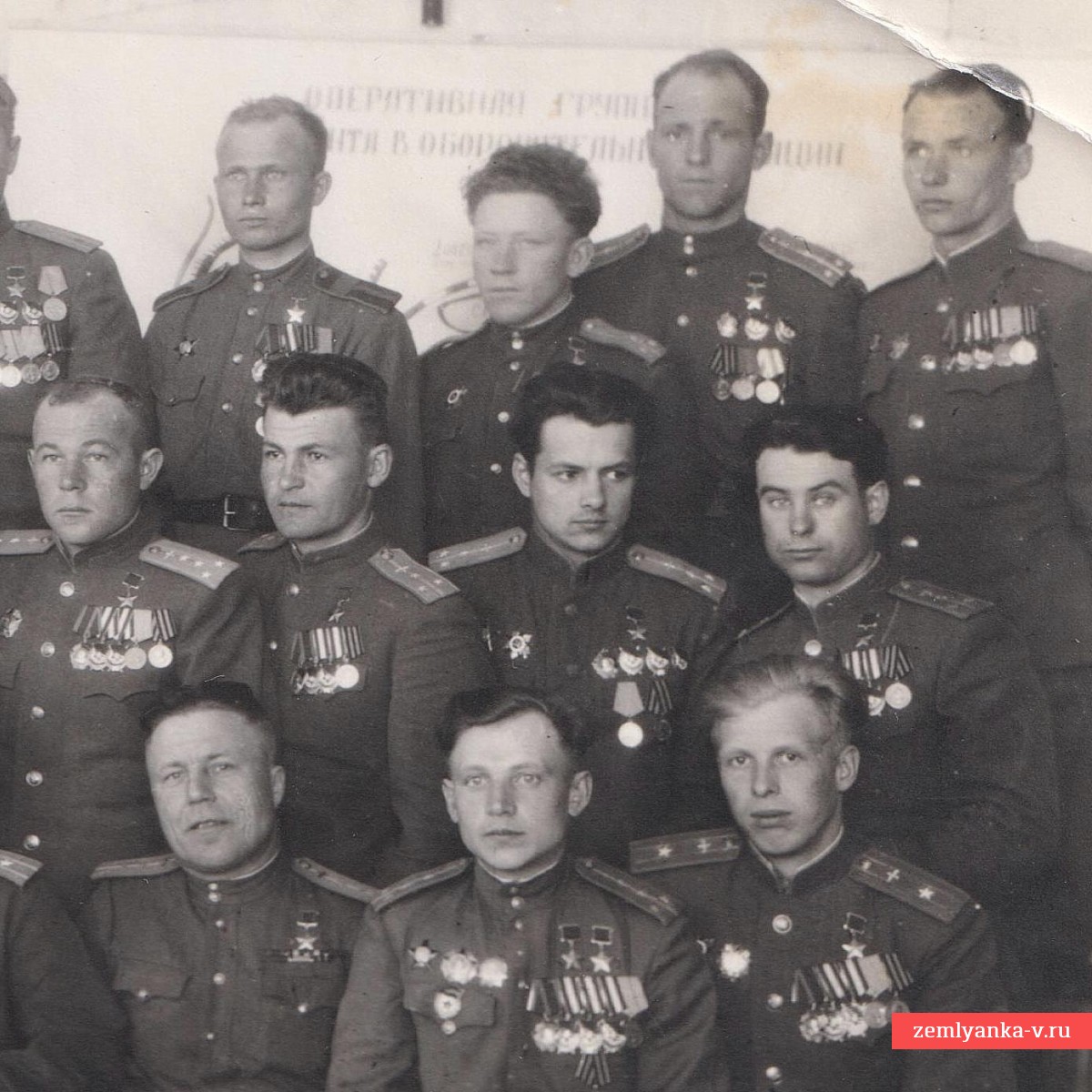The rarest group photo, which captures 31 (!) Hero of the Soviet Union. We had never seen such mass photographs before, especially during the war period (those depicted wear 5-carbon shoulder straps, which were abolished in 1946). The size is 110*166 mm. Guarantee of authenticity.